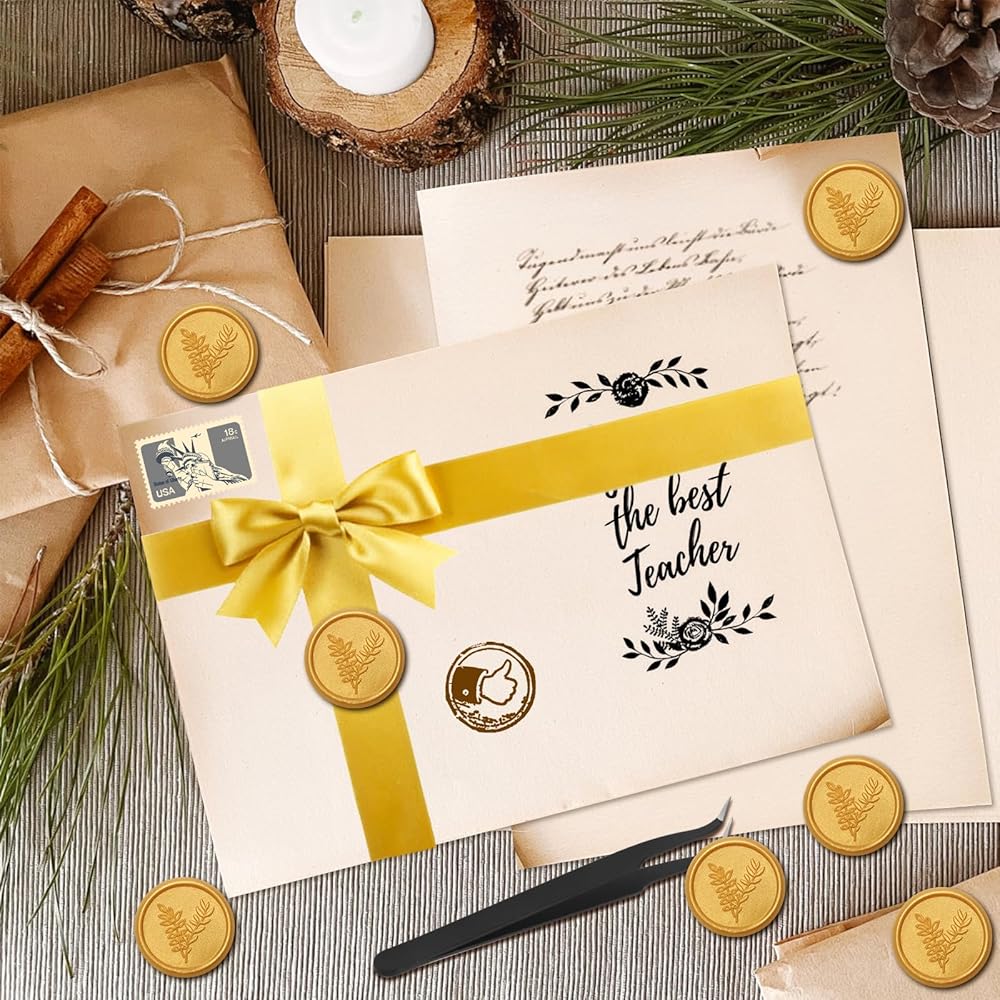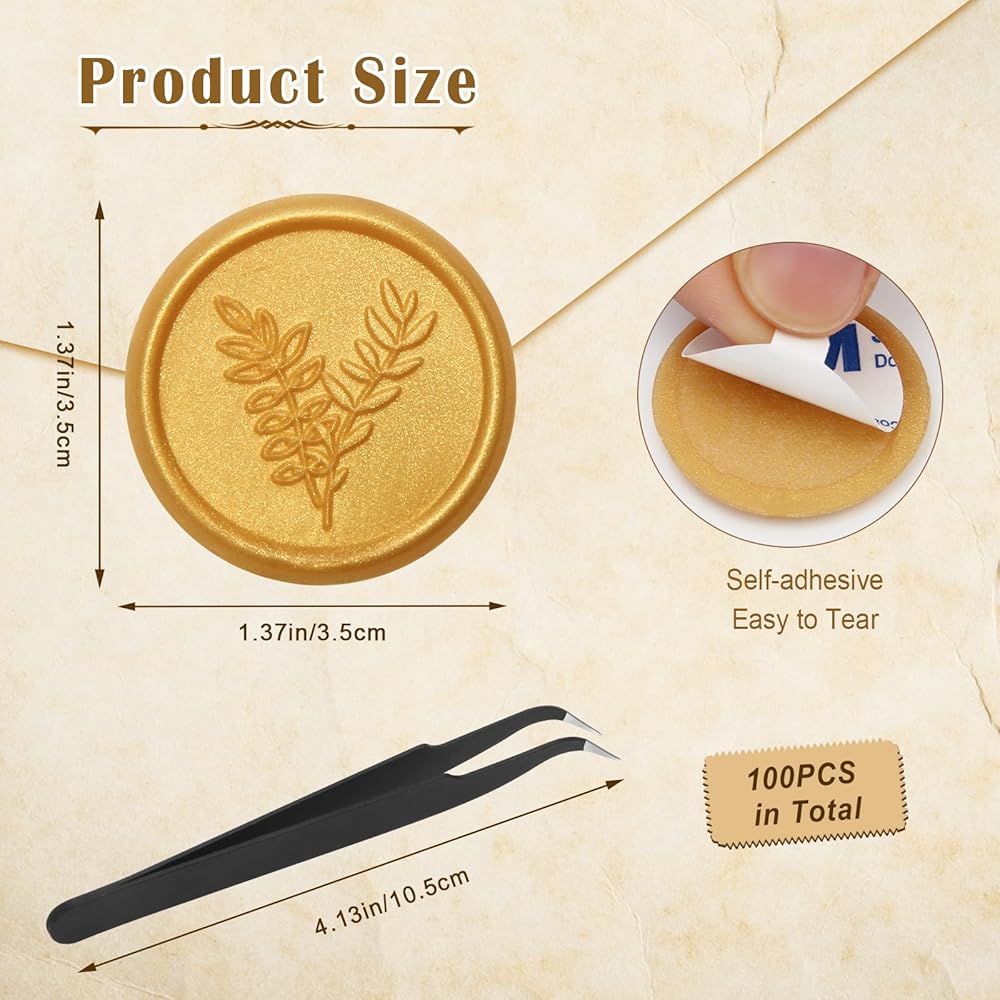 【الحزمة】 100 قطعة من ملصقات ختم الشمع الذهبي ، كل قطر هو 1.37 بوصة/35 مم ، ويأتي مع ملاقط ، وهو ما يكفي لتلبية احتياجاتك المختلفة من الزخرفة والختم وداي.