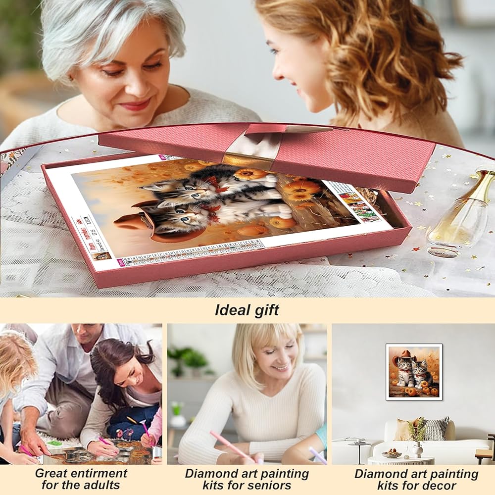 تدريبات كاملة - مجموعات اللوحات الماس القطط للبالغين ، تغطي الخرز صورة الرسم الماسي بأكملها وجعل الصورة أكثر لمعان ، إذا كان لديك ما يكفي