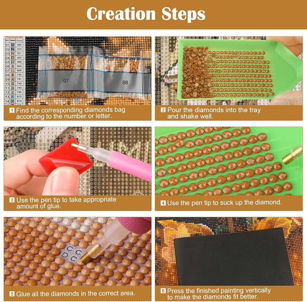 • المزيد من الماس: نحن نقدم حبات إضافية بنسبة 30 ٪ لكل لون. يتم فحص جميع لوحات فنية الماس ووزنها قبل مغادرة المصنع لضمان حصولك على حبات كافية لإكمال تحفةتك