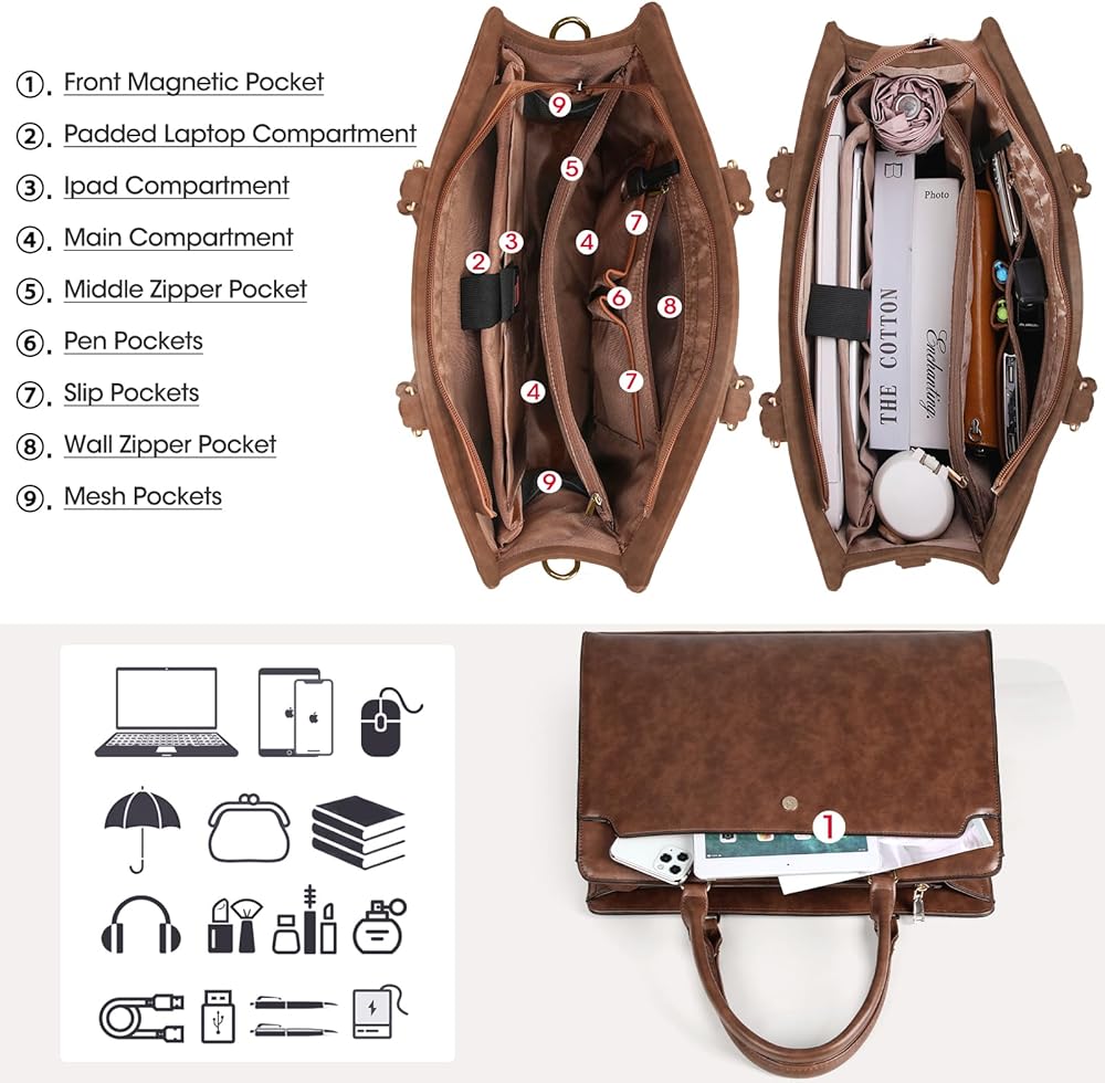 • حقيبة حمل متعددة الاستخدامات: أكياس عمل احترافية للنساء تأتي مع مقبض مريح وحزام الكتف القابل للفصل وقابل للتعديل ، يمكن حمله بطرق مختلفة. يمكن استخدام حقيبة الكمبيوتر العملية باعتبارها حقيبة يد ، وحقيبة الكمبيوتر المحمول ، وحقيبة حمل المعلم ، وحقيبة السيدات ، وحقيبة الكتف المدارس الجامعية وحقيبة عمل مكتب الأعمال.