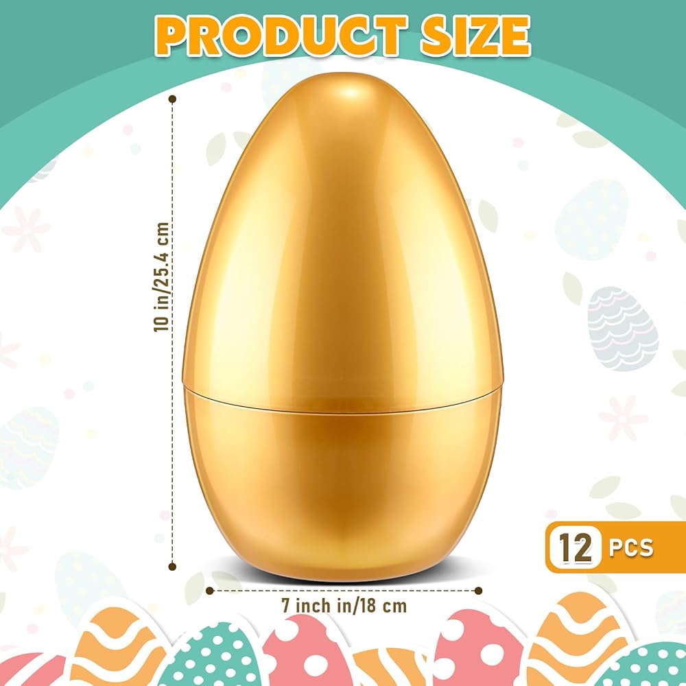 Package Includes: you will get 12 pieces of golden giant Easter eggs (each egg consists of upper and lower parts), with sufficient quantity to better meet your Easter decoration needs