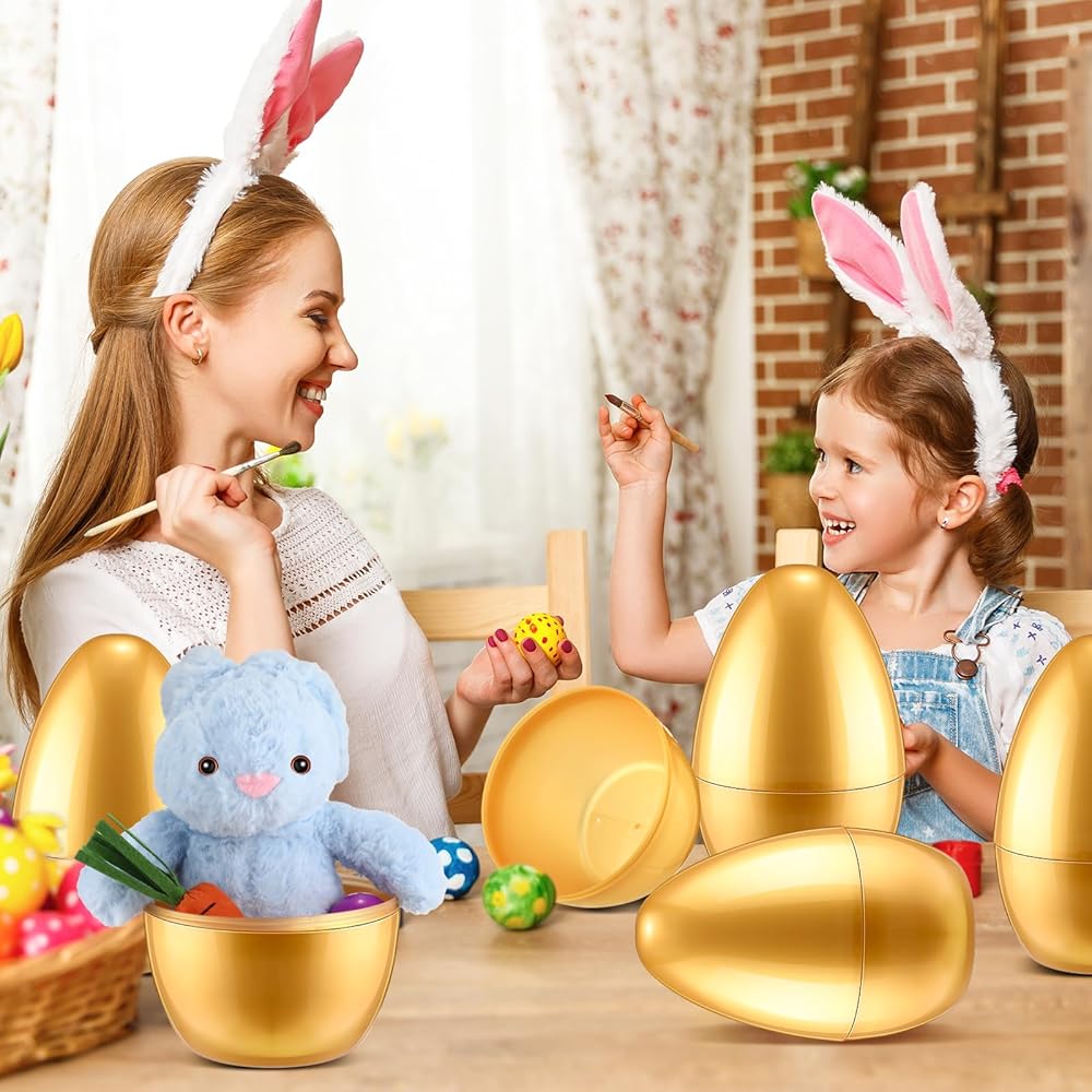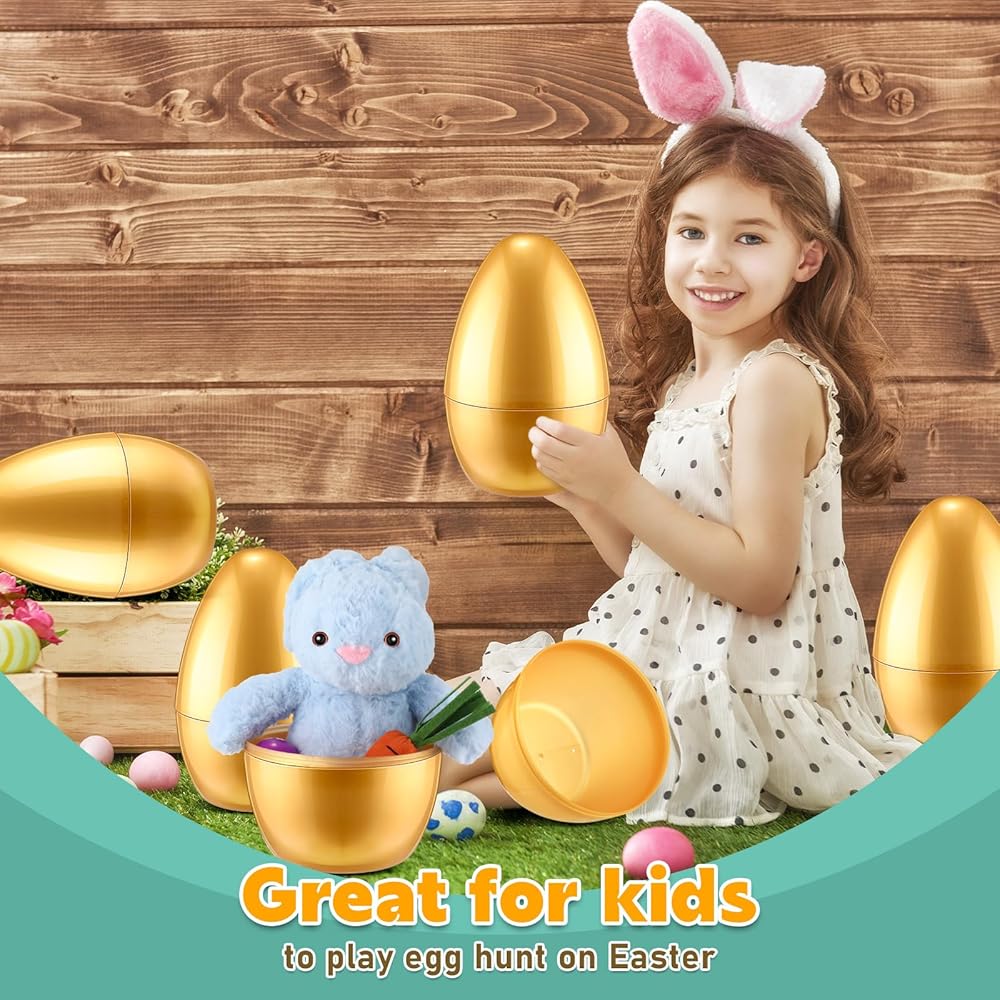 Extra Large Size: each golden extra large fillable Easter egg measures approx. 10 x 7 inch, provides ample storage space to fill your stuffed animals, candies or other small crafts, which will bring you a lot of fun and happiness