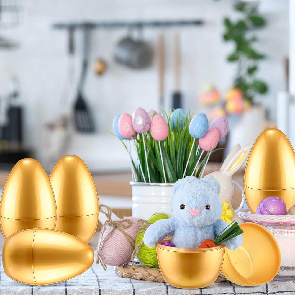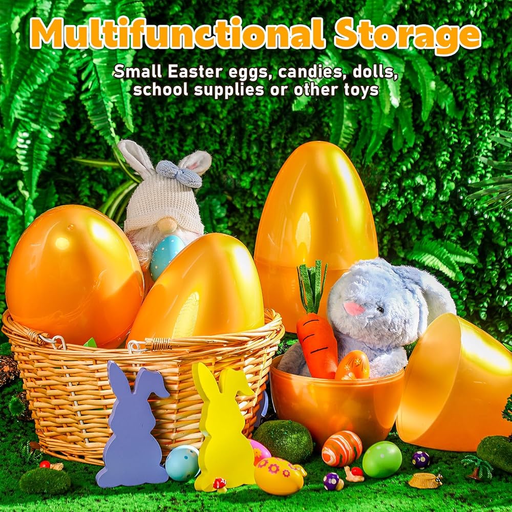 Easy to Open and Close: our golden Easter giant plastic eggs are lightweight, making it easy for you to open and fill with candy, then you can send them as beautiful souvenirs to your guests who will be happy to receive them; Or you can put them in a basket, it will bring you a lot of convenience