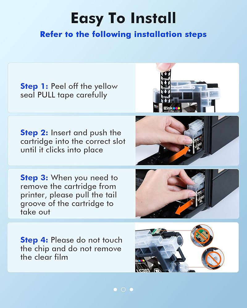 • النصائح: لا يحتوي خرطوشة حبر LC203 المحدثة على مقطع قفل ، ولكن ليس له تأثير على ملائمة الطابعة لجعلها تعمل