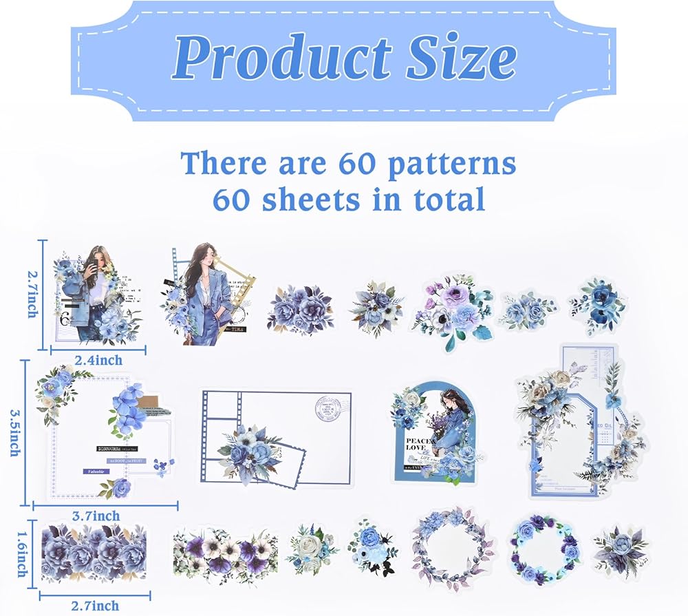 • High Quality Materials: The 60 pcs scrapbook paper is made of PET matte process, and has good waterproof, sunscreen performance. Our journaling stickers are not easy to break or deform, excellent adhesion makes them easy to use and remove