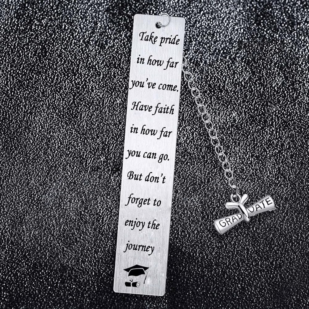 • If you are looking for a thoughtful graduation gift to express your best wishes and encouragement to friends or family who are about to graduate, the inspirational graduation bookmark is the warmest and most thoughtful graduation gift. This graduation bookmark is a great surprise gift for your family and friends.When they is reading, this bookmark not only reminds them of the location of reading, but also helps you let them always feel your love, concern, and encouragement.
