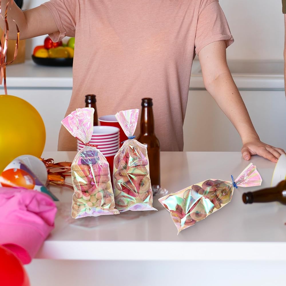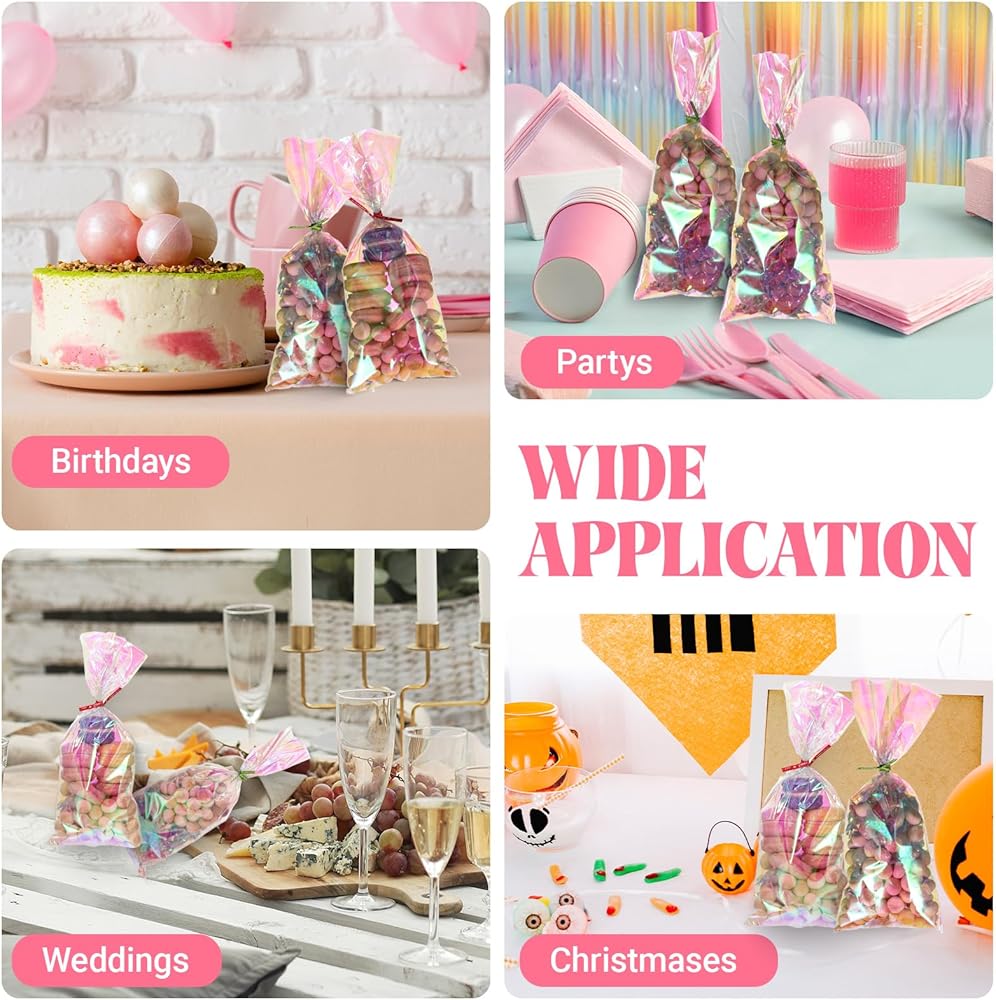 【Striking Iridescence】: Bring a magical touch to your events with our treat bags. The iridescent finish creates a captivating display that draws attention and elevates the presentation of your party favors and gifts. Ideal for birthdays, weddings, and other special occasions.