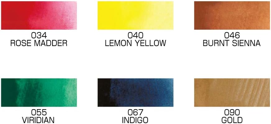 • [6 RICH COLORS] Colors: Rose Madder, Lemmon Yellow, Burnt Sienna, Viridian, Indigo, Gold. GANSAI TAMBI is traditional, Japanese watercolor, developing colors that are based off of those seen in nature. Colors are vivid and opaque, and pans are carefully fill so that the paint is smooth, rather than granulated, and dries with a slight sheen. Individual pans are replaceable.