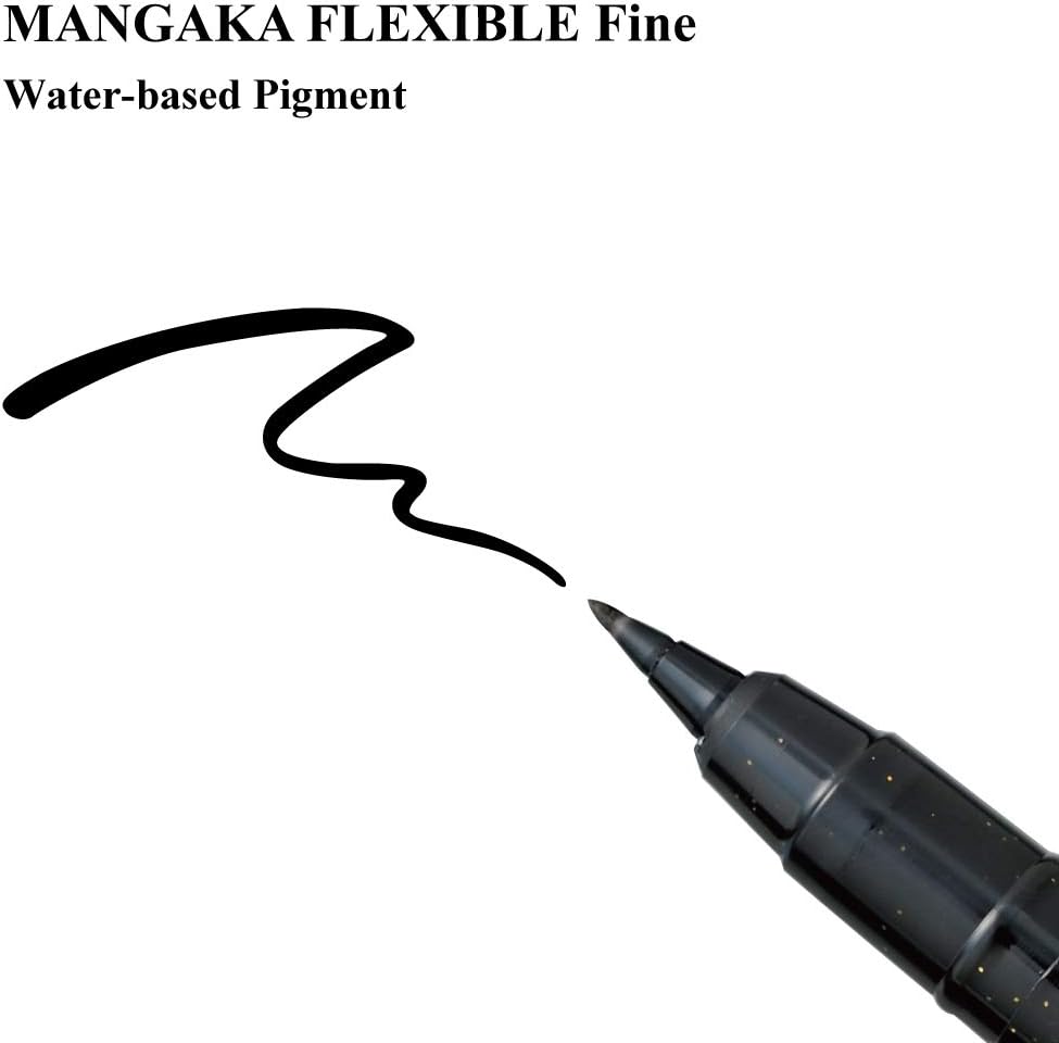 • [MANGAKA] Fine Brush pen for drawing. Developed by incorporating the thoughts and techniques of professional Japanese cartoonists with the experience of Kuretake production. Since it contains water-based pigment ink, ink will not bleed or mix with water once it has dried completely.