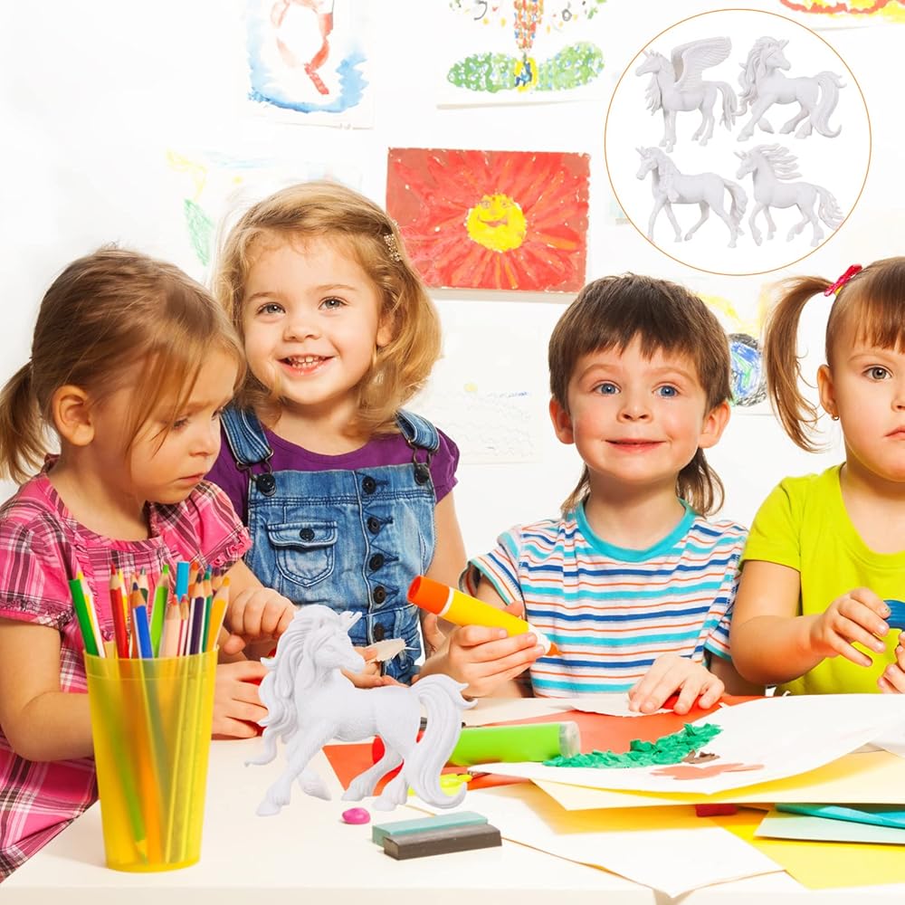 White Animals Drawing Figurines: Unicorn art are made of plastic, safely children.Unicorn arts an crafts painting kit for kids ages 4-8-12 is great allow their ideas, feelings and thoughts easily, and helps them to vent any bottled up emotions