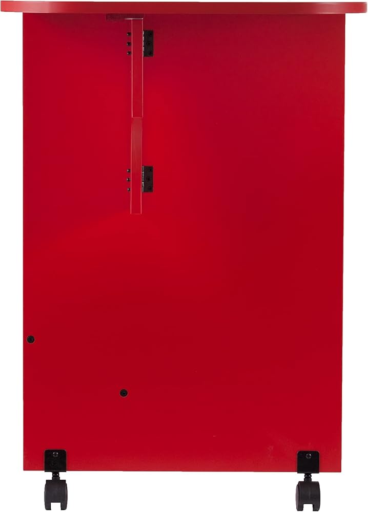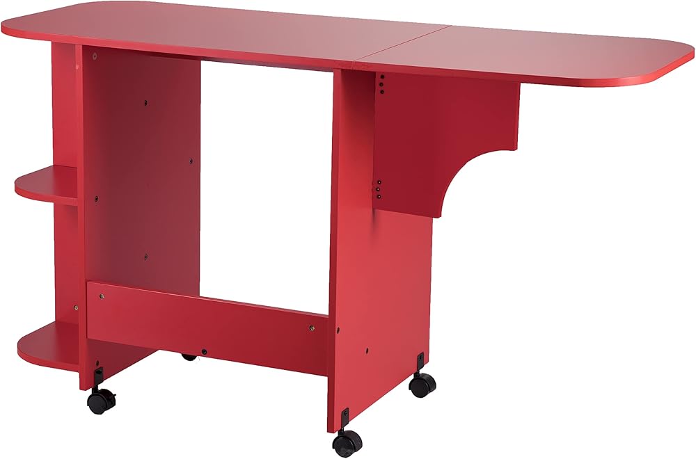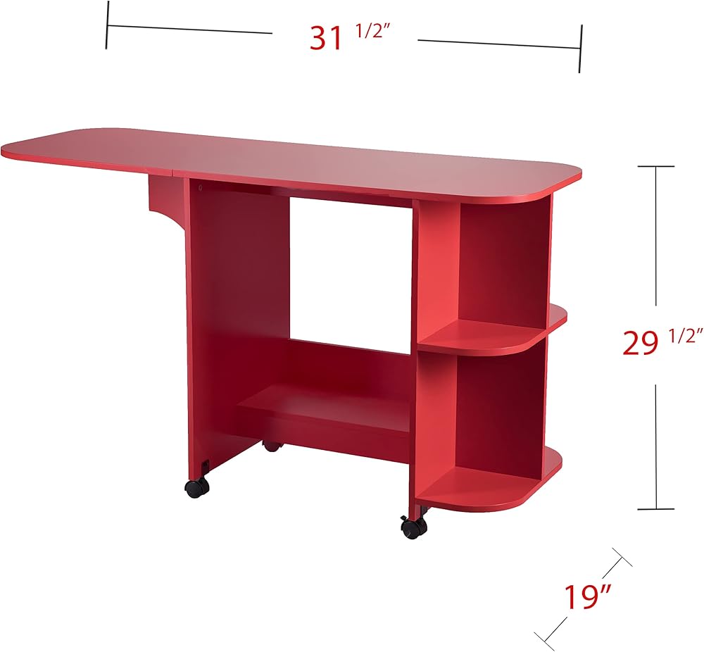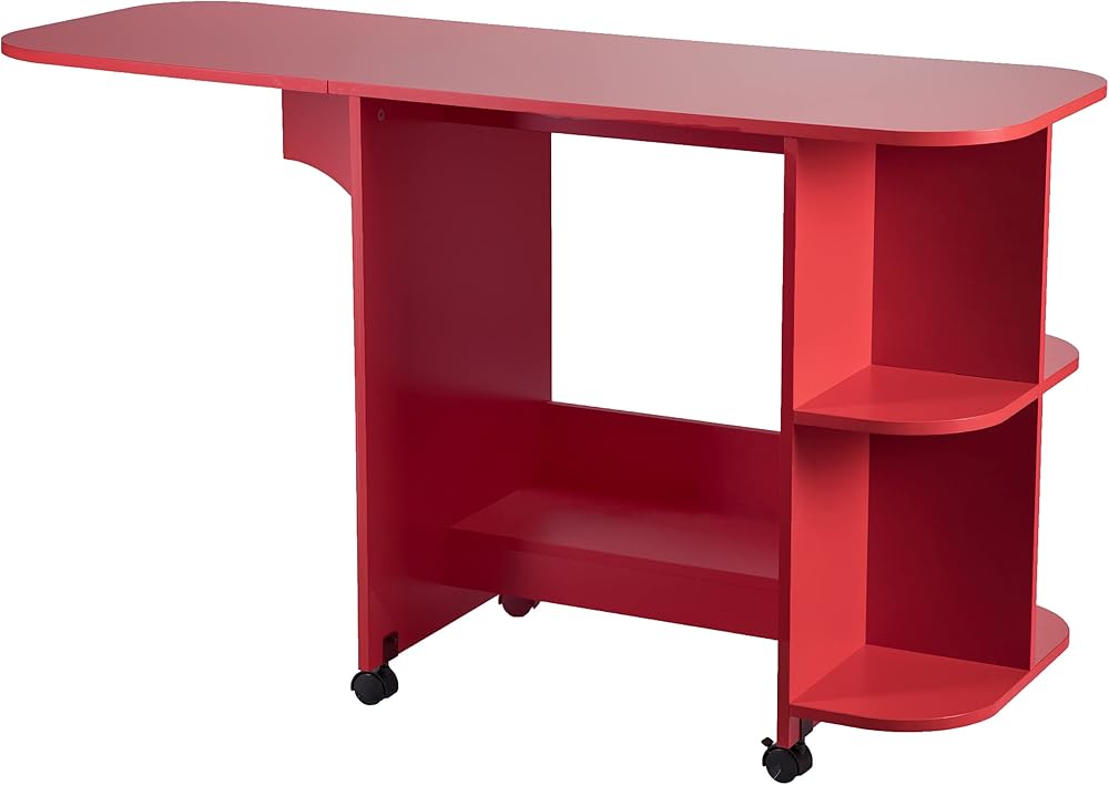 لا تضحي بأي وظيفة من أجل الأناقة، احصل على كل شيء مع هذه المجموعة المميزة للحرف اليدوية. لون أحمر جريء يعطي انطباعًا إبداعيًا رائعًا. توفر المساحة الصغيرة، يمكن طي طاولة الخياطة هذه لتناسب المساحات الضيقة، وتمتد لاستيعاب قطع القماش الكبيرة. الأرفف الجانبية ترتيب لوازم غرفتك الحرفية؛ وتحرك العجلات في مكان عملك حيثما تحتاجه، ثم تقفلها عندما تكون جاهزًا للعمل. حرفي بأناقة؛ قم بلف مكتب الخياطة اللامع هذا في المكتب المنزلي أو غرفة الحرف اليدوية أو مساحة المفهوم المفتوحة. آلة الخياطة غير متضمنة.
