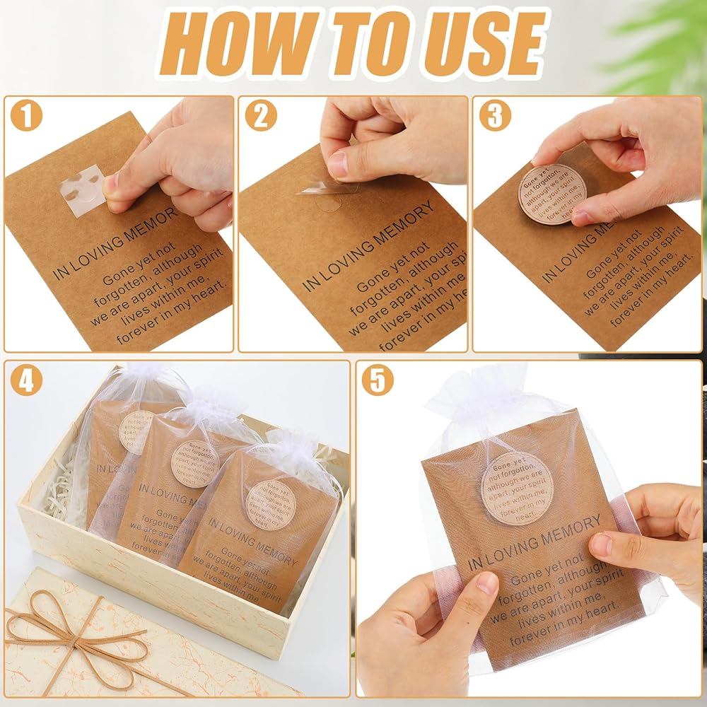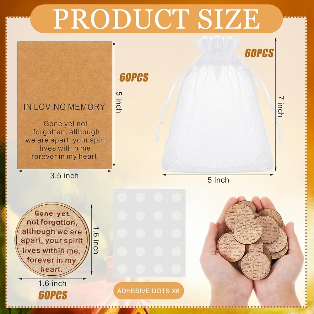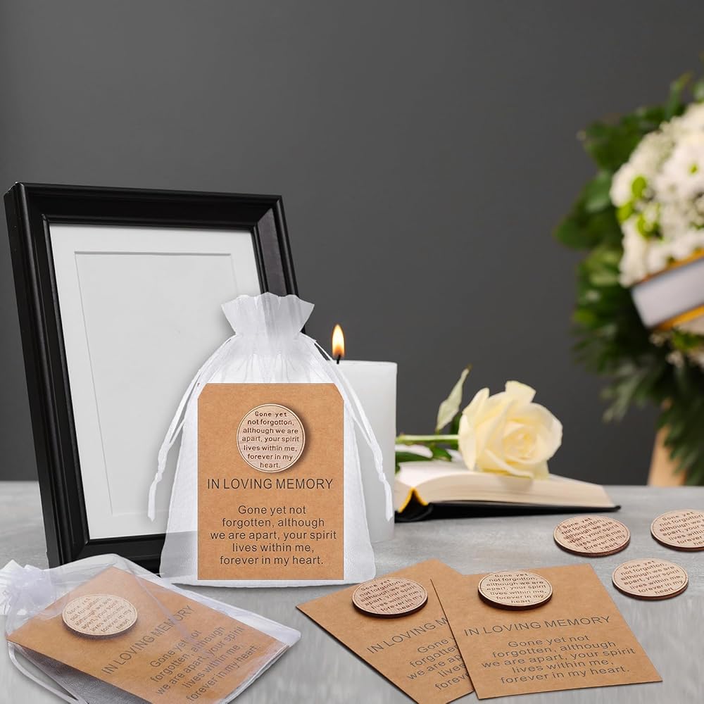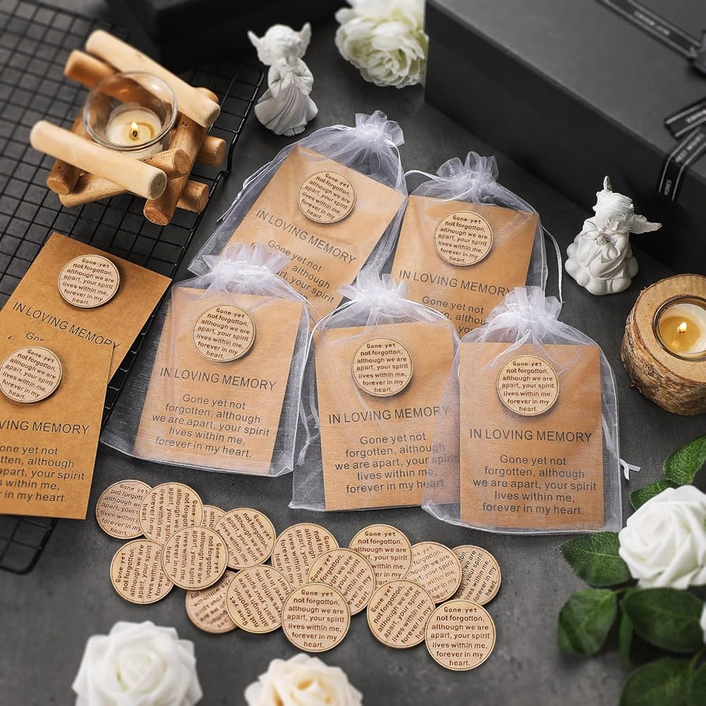Our celebration of life gift set is matched with memory kraft cardboard, round wooden pocket hug commemorative gift coins, and organza gift bags. The assembly makes the whole meaningful while conveying elegance. It is a creative life celebration gift for guests