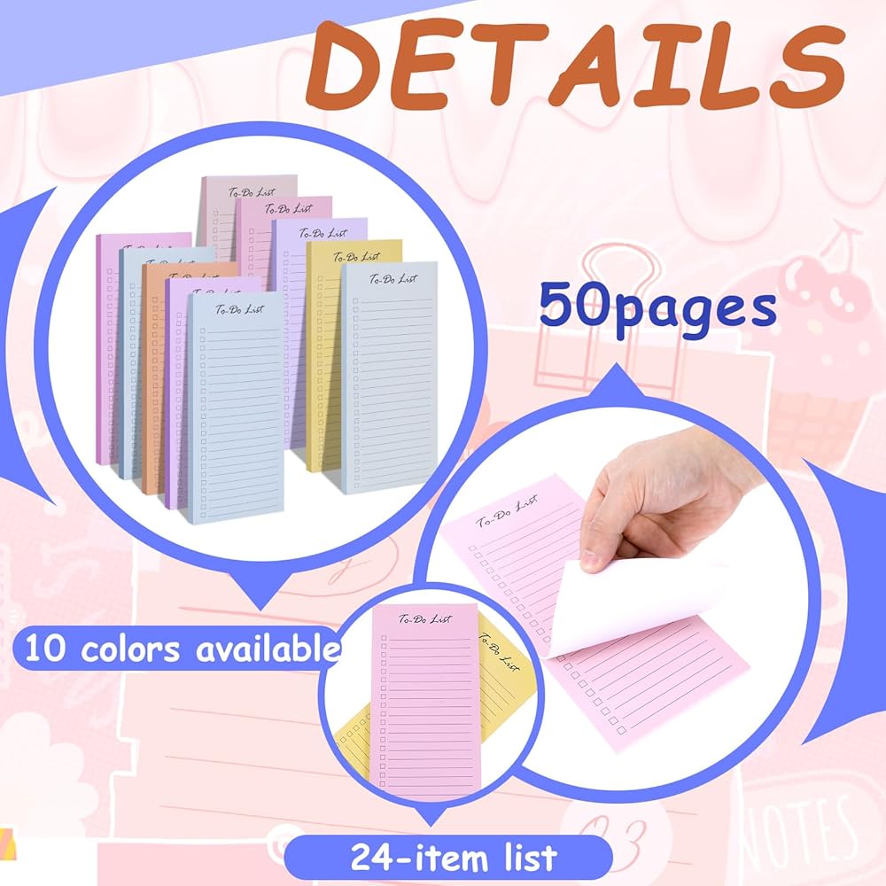 Vibrant and Eye-Catching Design: Featuring a colorful and stylish block design, our 3.7 x 8.5 notepad add a touch of charm to your planning routine. The color-coded sections help you categorize tasks efficiently, making it easy to track and check off completed tasks.