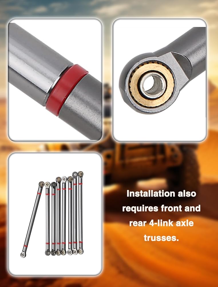مجموعة التثبيت الكاملة: بالإضافة إلى إكسسوارات سبيكة الألمنيوم لدينا ، يتطلب التثبيت دعامات محورية من الأمام والخلفية 4-Link للتعزيز الشامل لسيارة RC Crawler. تحويل سيارتك للتعامل المتفوق والقدرة على المناورة.