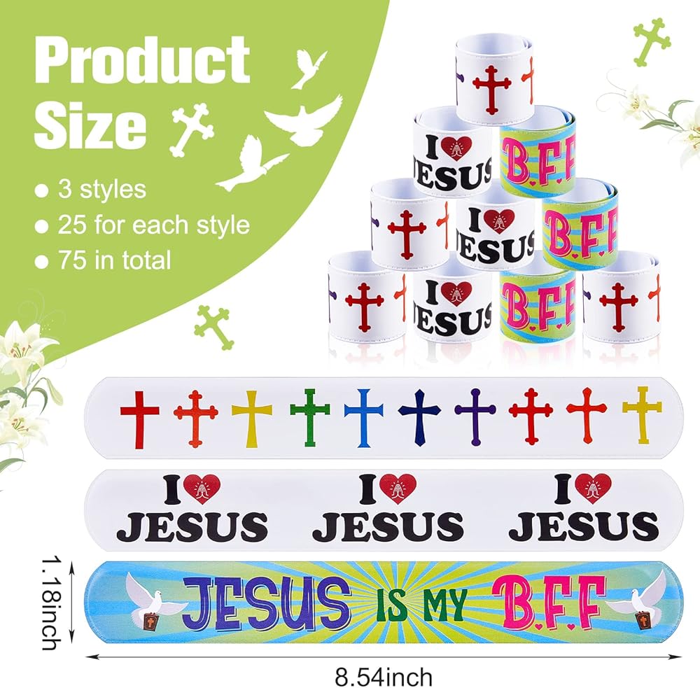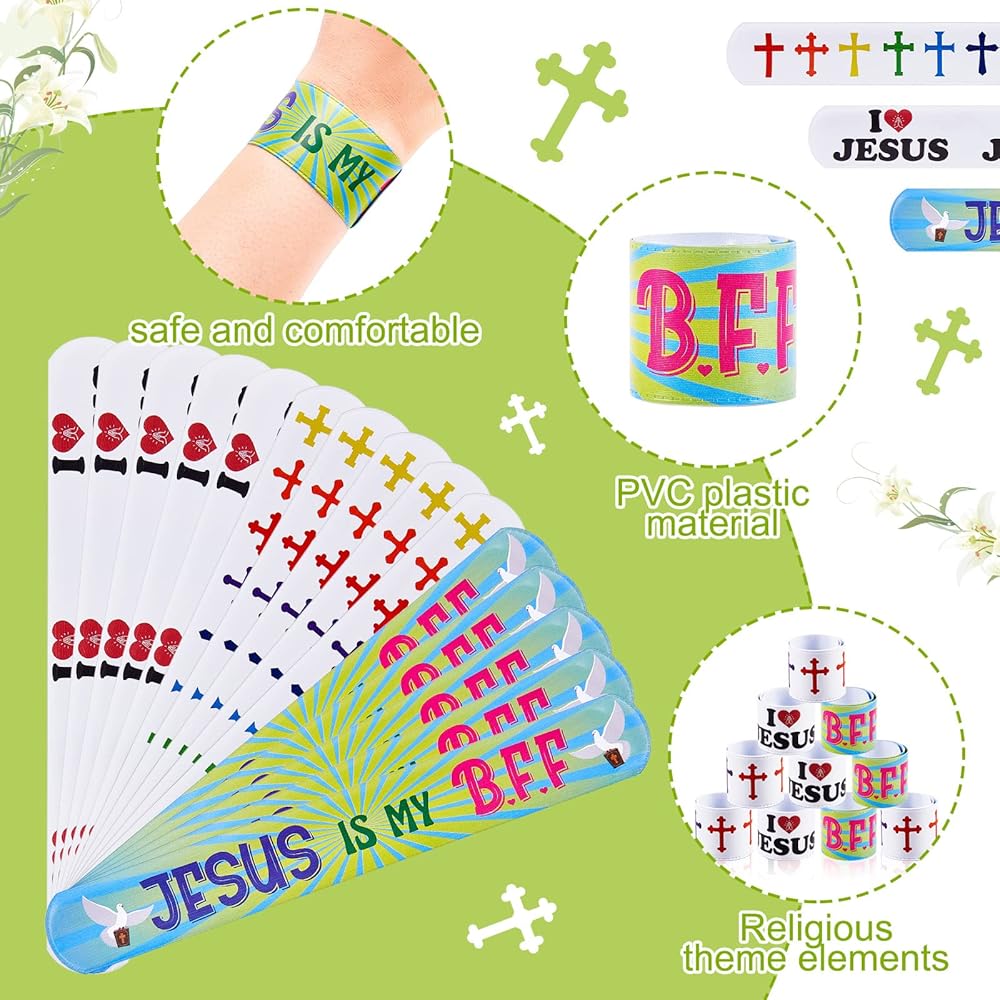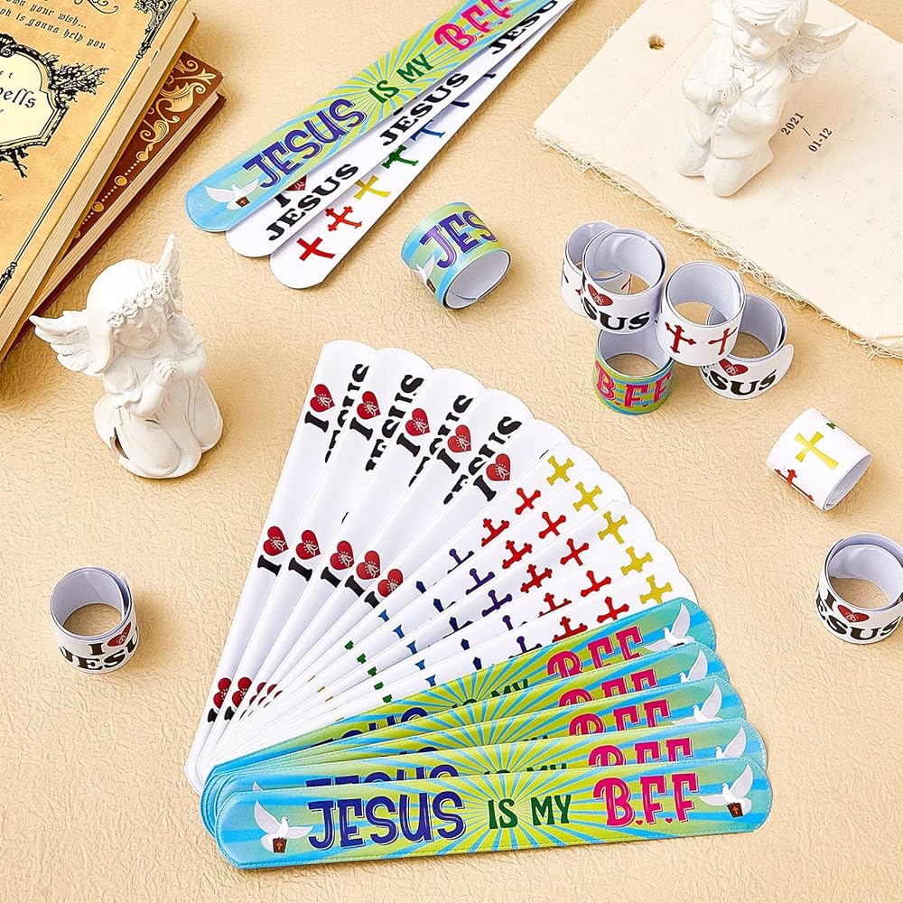 The slap bracelets party favors can be regarded as meaningful gifts for student, friend, family member and so on, ideal for Easter party, religious activities, Sunday school, Jesus theme activities, school events, etc.