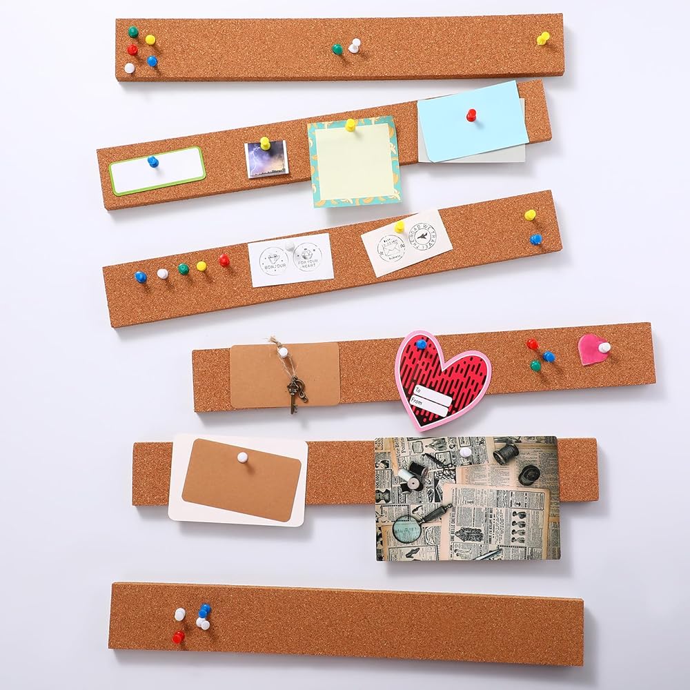• Proper Size to Use: these rectangle cork boards for walls are about 2 x 15 x 0.5 inches/ 5.1 x 38.1 x 1.2 cm, enough thickness to hold push pins and so that push pins will not go through your boards or break your wall