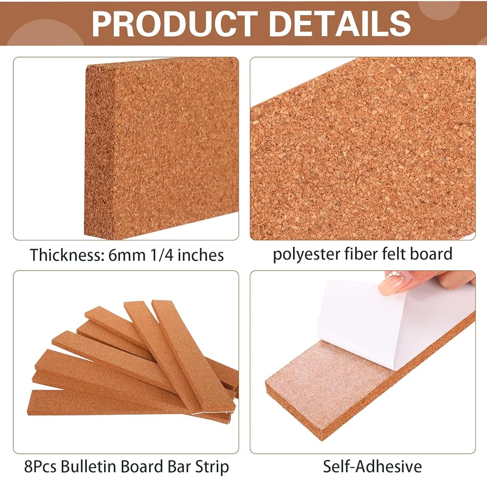 • Safe and Solid Material: this cork board strip is made of cork material, reliable and solid, safe and thick, not easy to deform or break, lightweight and comfortable to touch, so you can use it for a long time