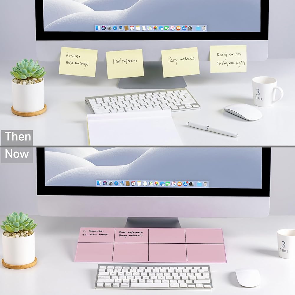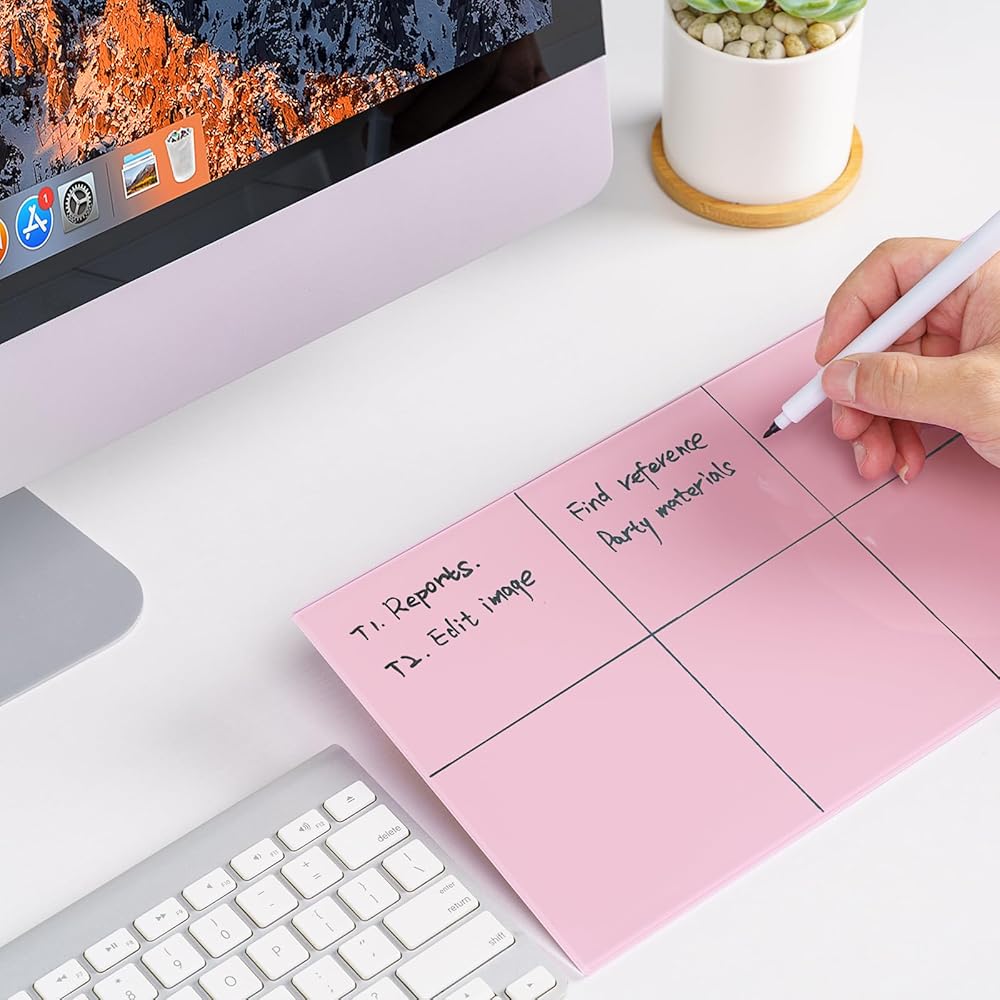 - المواد: تتكون اللوحة البيضاء لسطح المكتب من زجاج قوي يتميز بسطح أنيق وقاعدة آمنة غير قابلة للانزلاق تعزز كتابة الراحة