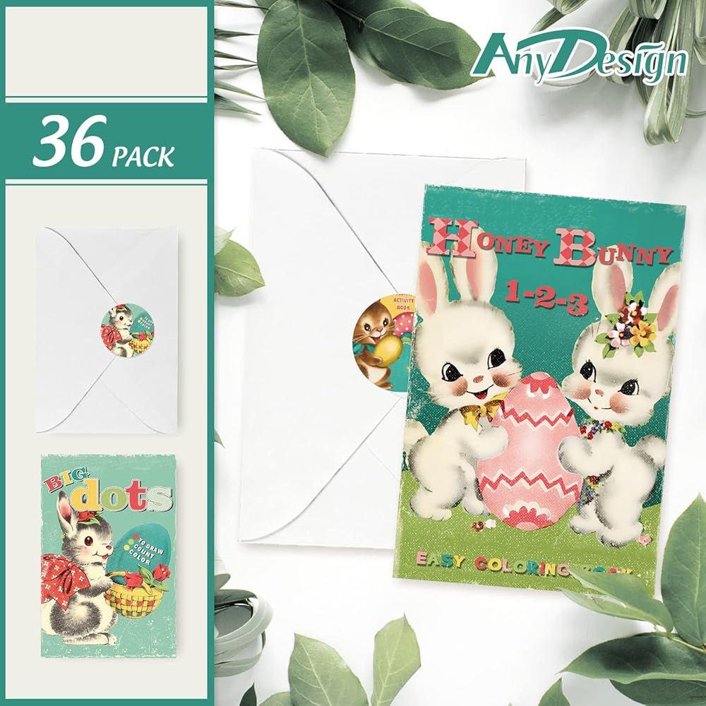 36 packs Easter cards with envelopes and stickers, printed with cartoon rabbits, girls and boys, are sufficient to meet your different needs.