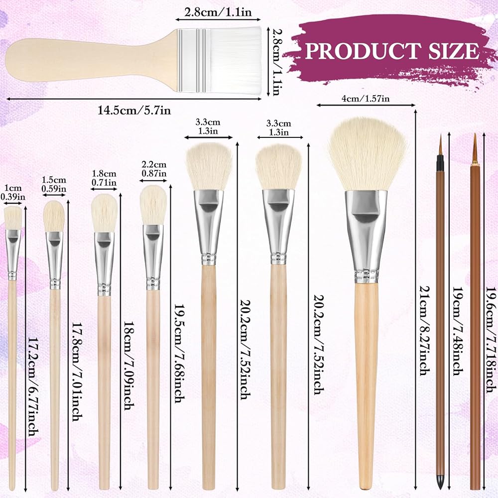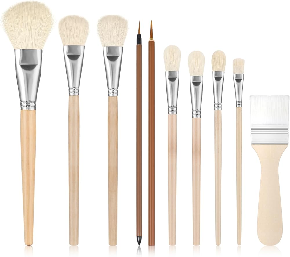 Comprehensive Set: This set includes 10 high-quality pottery glaze brushes for acrylic paint, perfect for pottery glaze brushes, acrylic blending brush, and various other painting techniques. Each brush is designed to meet your diverse artistic needs, from detailed work to broad strokes.