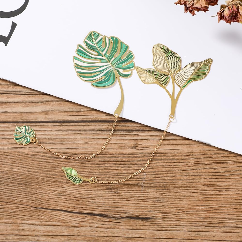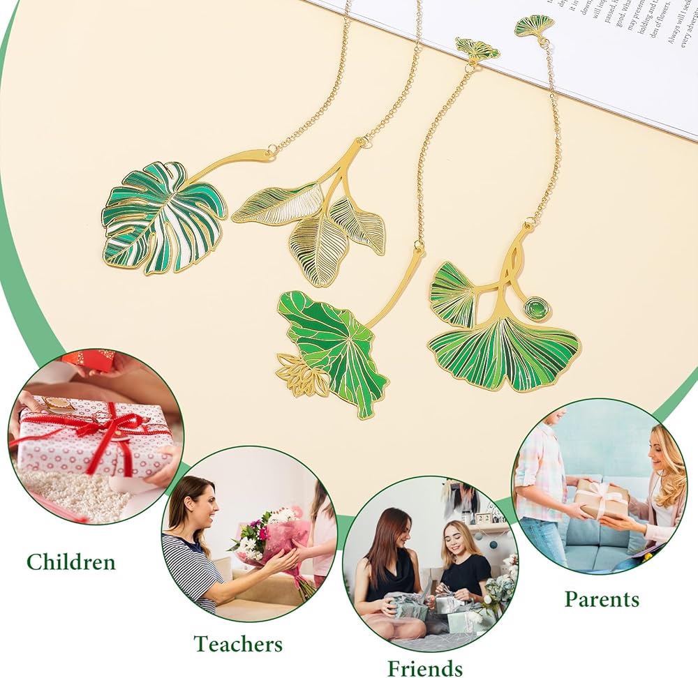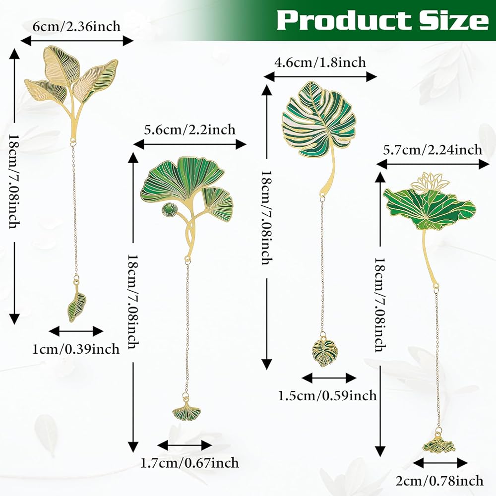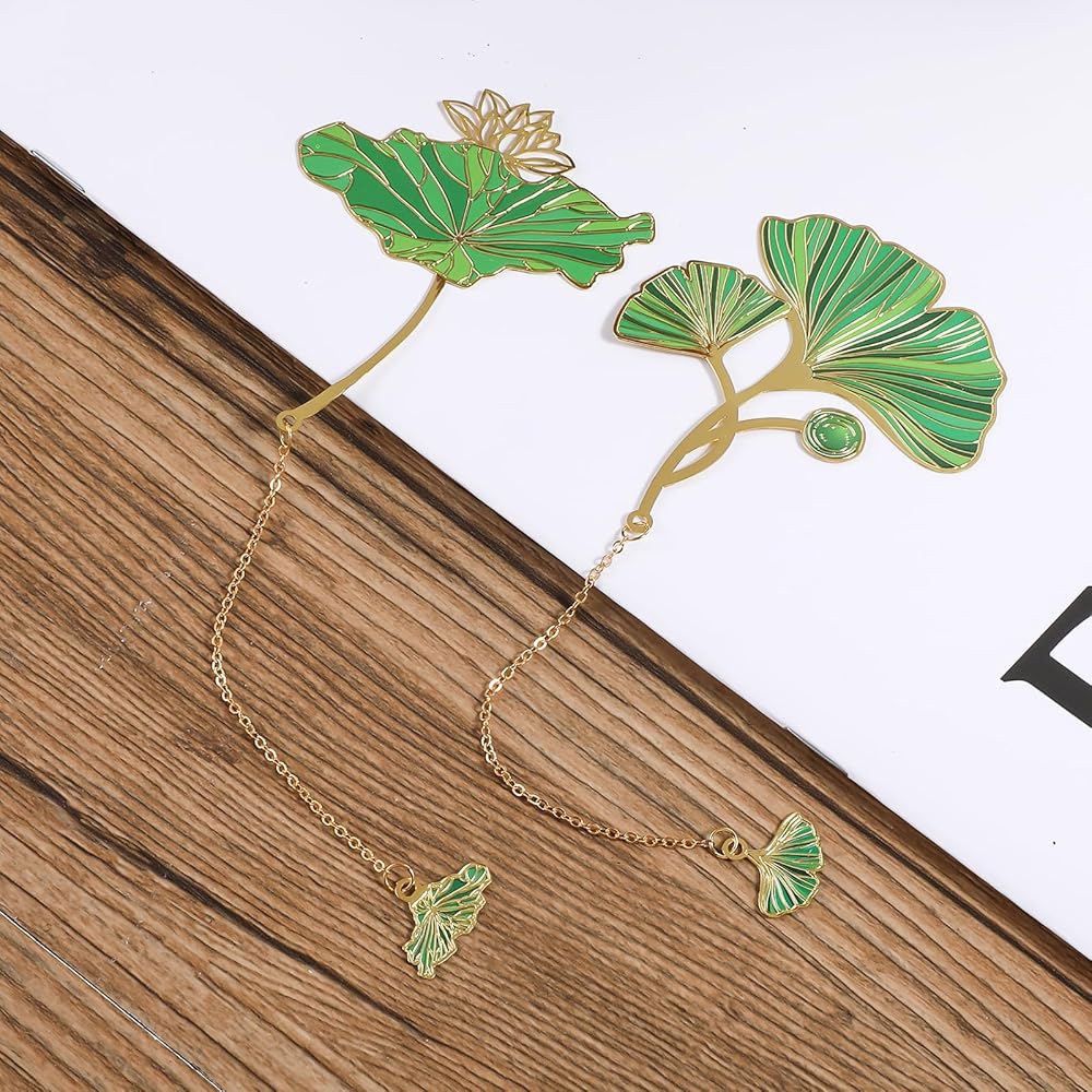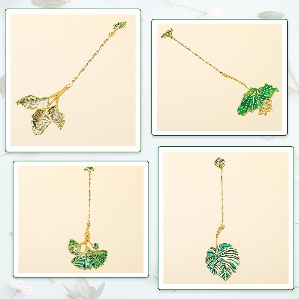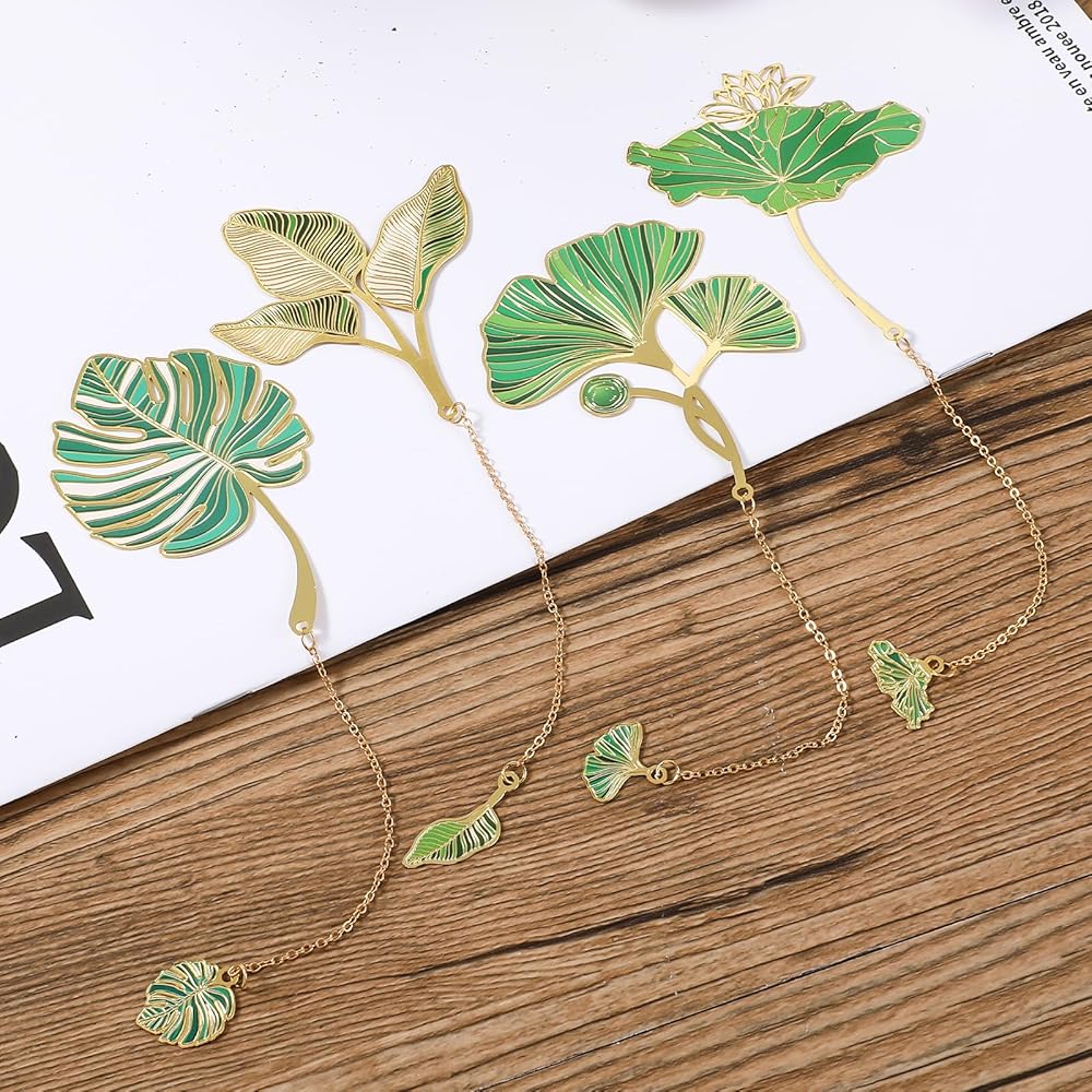 4pcs Metal Bookmarks with Chain Lotus Leaf Bookmark Birthday Gifts Teacher Christmas Gifts Unique Plant Gifts Literary Accessory Appreciation Stuffers for Grils Women Book Lovers Readers Writers