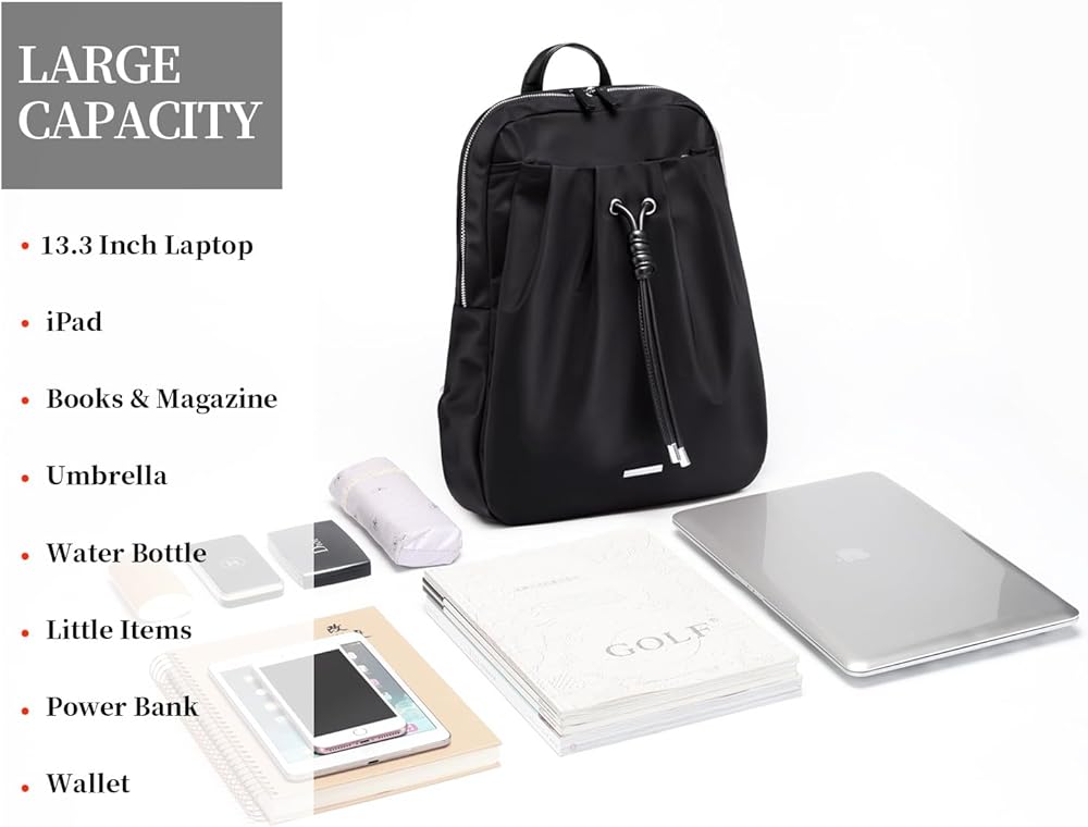 • 💖【 سعة كبيرة】- حقيبة الظهر ليست ضخمة جدًا ولكنها فسيحة لكل ما تحتاجه. المقصورة الرئيسية تناسب كمبيوتر محمول تصل إلى 13.3 '. داخلي مع جيب سحاب وجيوب فتحة ، خارجي مع جيب أمامي سحاب وجيب سحاب خلفي.