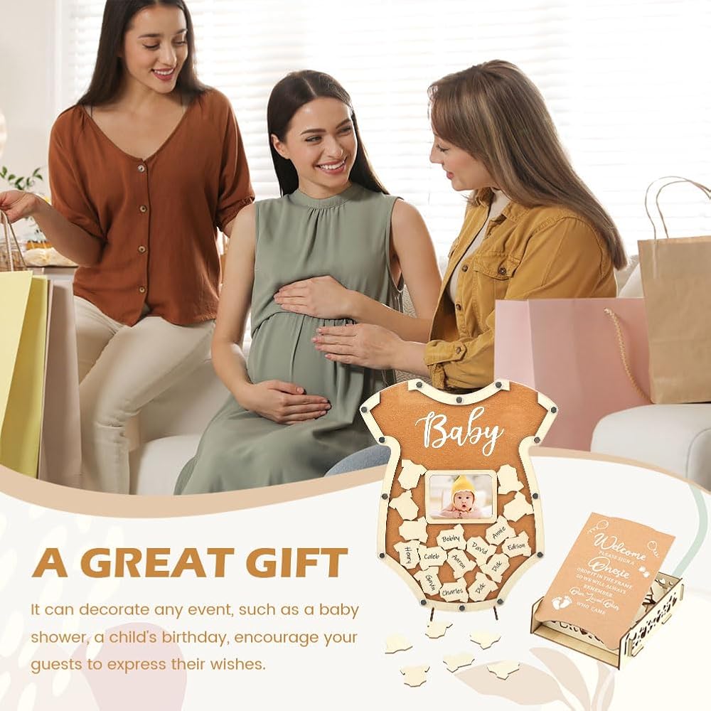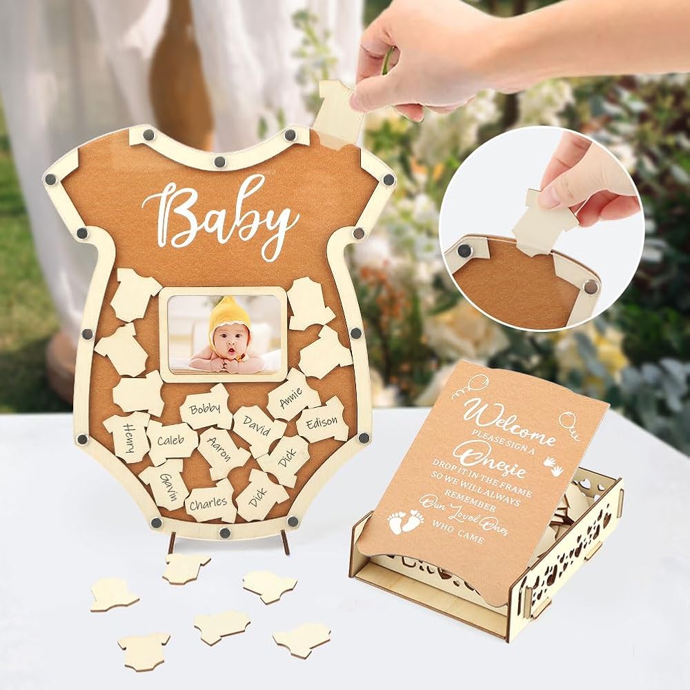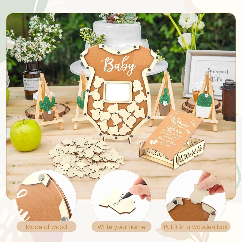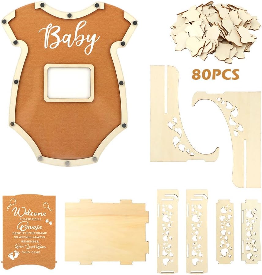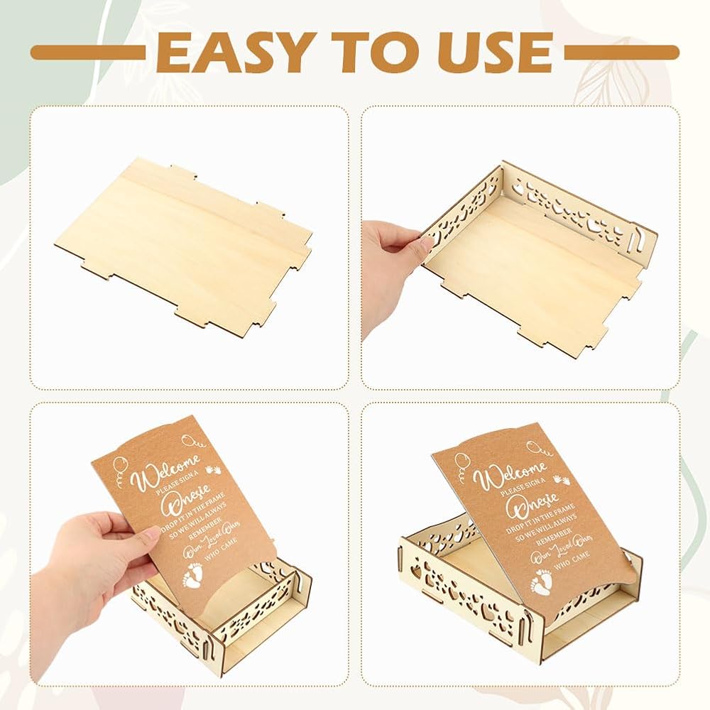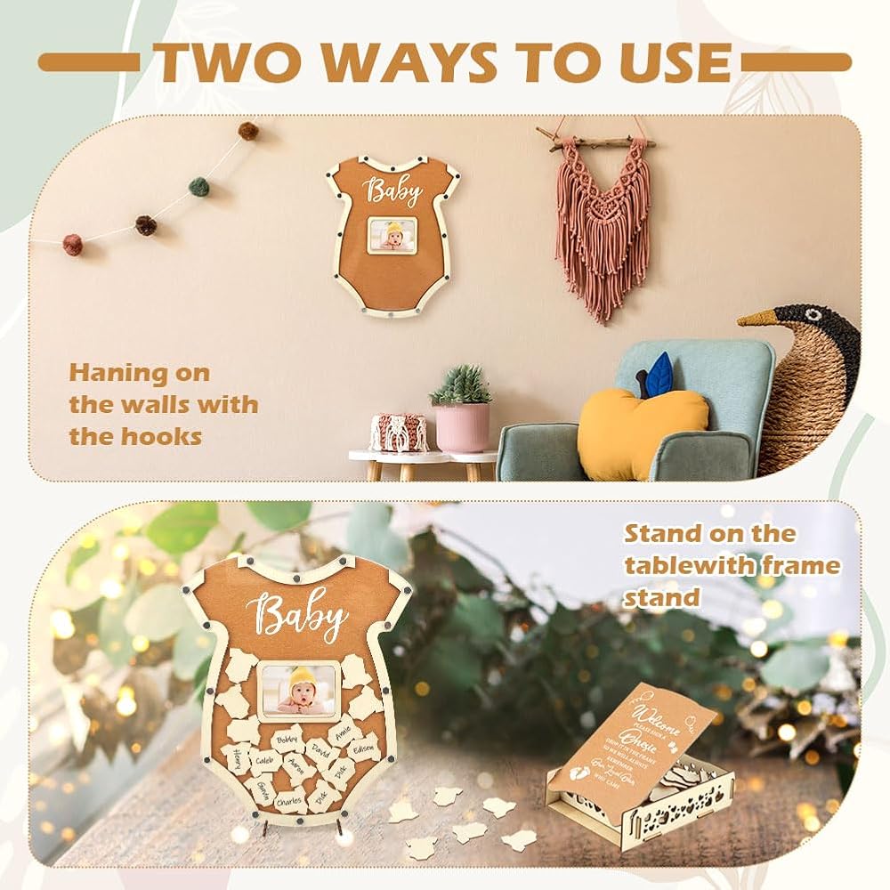 【WHAT YOU WILL GET】You will receive 1pc baby shower guestbook frame(with stand), 1pc signature card box, 80pcs wood slice, the practical set is practical and meaningful, guests sign their names on the wooden slices, these can be safely kept in the beautifully designed wooden box.