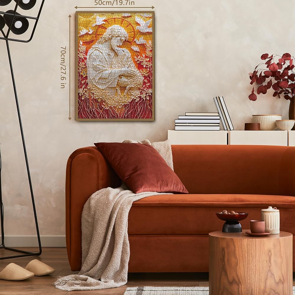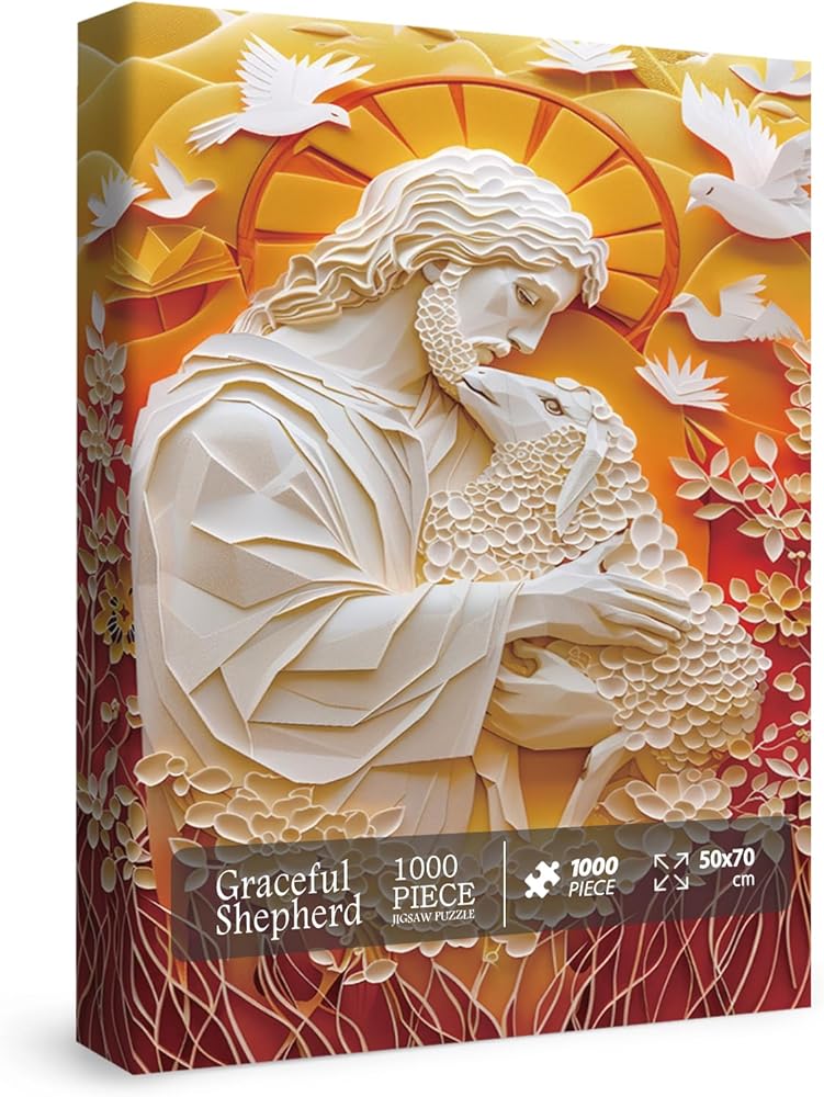 Jesus Christian Sheep Puzzle for Adults 1000 Piece, Flower Religious Jigsaw Puzzle, Papercut Bird Art Puzzle