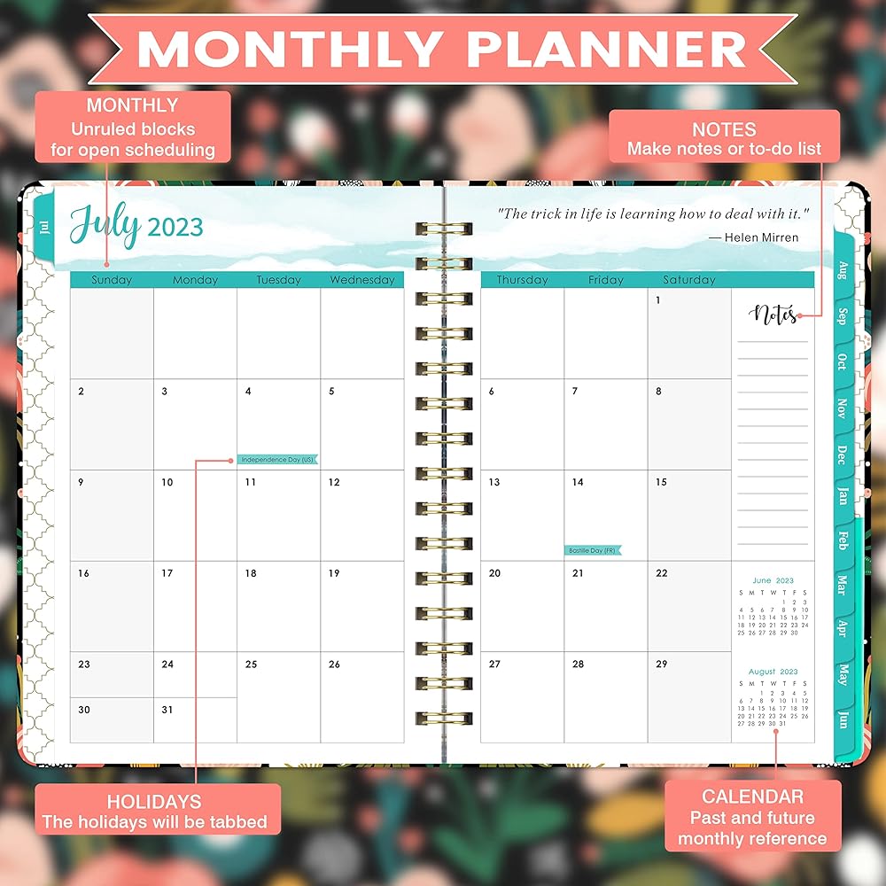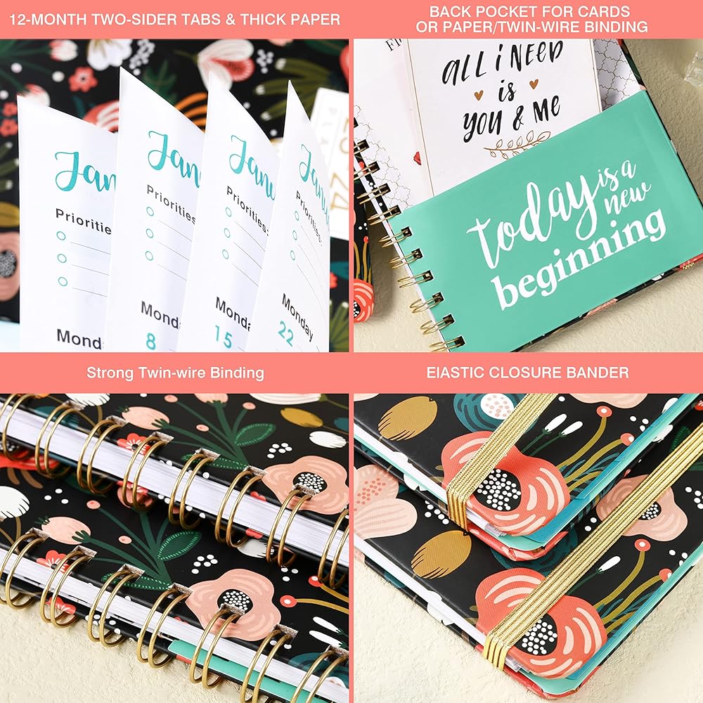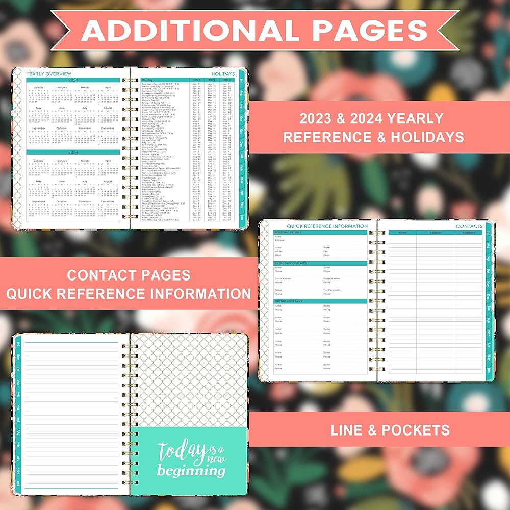 🌹 التصميم الوظيفي-الربط القوي ذات الأسلاك المزدوجة للمنتخب 2023-2024 ، مخطط شهري أسبوعيًا Lay-Flat 360 ° + 12 علامات تبويب شهرية للمرجع السريع + الخلف داخل الجيب للاحتفاظ ببعض البطاقات + مرونة لإبقاء المخطط مغلقًا.