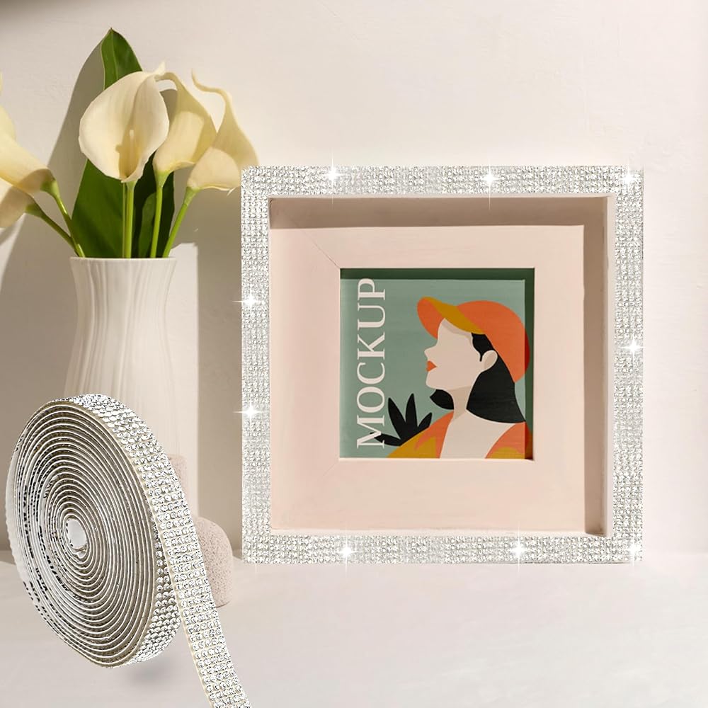 Glittery Effect: Rhinestone ribbon self adhesive composed of tiny rhinestones on a roll, easy to use, suitable for your various DIY needs. Glitter tape sparkles in the light, making the crafts more attractive. Crafts rhinestone stickers feature a classic shape that makes them look more three-dimensional, adding a touch of glamor to your artwork.