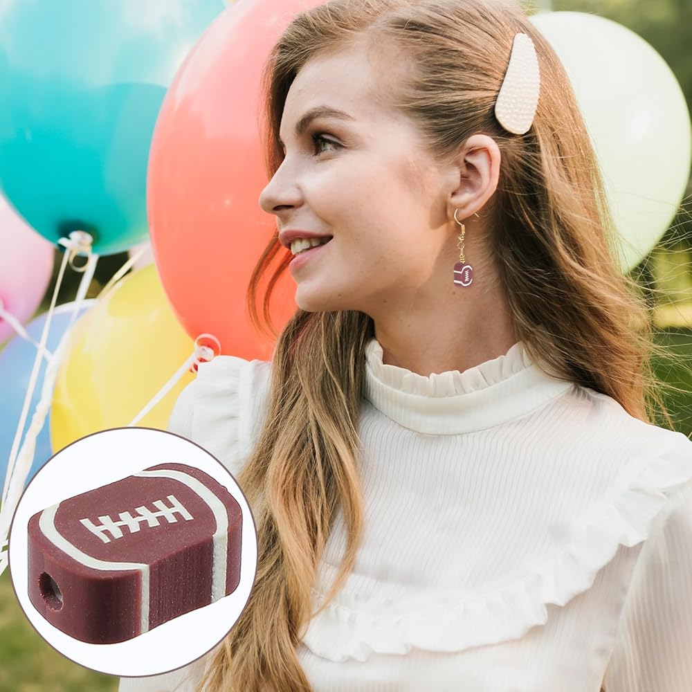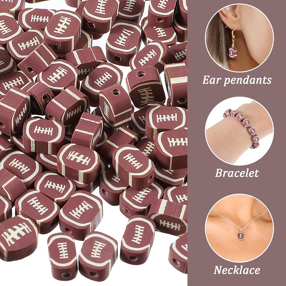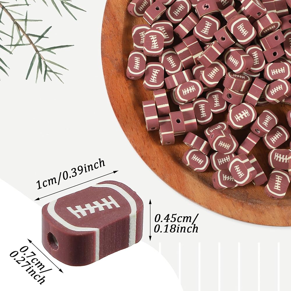• 【Football Beads for Bracelets】Crafted from premium polymer clay, these football-shaped beads are lightweight and soft, offering durability without cracking or fading, ensuring they stay vibrant over time