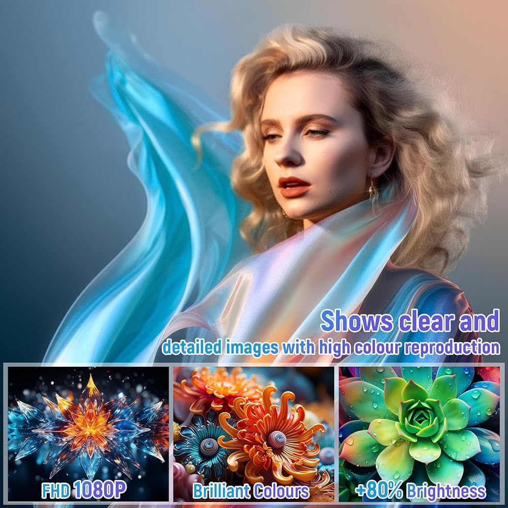 【جودة الصورة HD】 Fearwiky Mini Projector تدعم دقة عالية الدقة 1080 بكسل ، وتقديم صورة مشرقة ومفصلة دائمًا على شاشة 40-120 "، مع تفاصيل مرئية بوضوح ، مماثلة للتأثيرات المرئية ذات الجودة السينمائية. أفضل مسافة إسقاط هي 5.58 قدم.