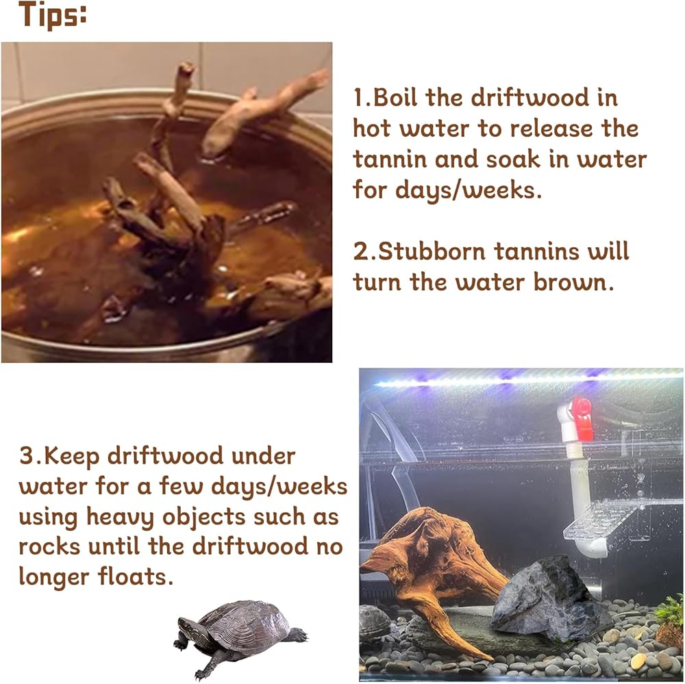 【نصائح】 إذا وضعت الخشب الانجراف في حوض السمك ، والغليان المطول الموصى به ، والغليان لمدة 3-4 ساعات وتمرغ لأيام/أسابيع. إزالة العفص هي عملية طويلة تتطلب الصبر. بعد ذلك ، غمر فرع الخشب الطرف في دلو مع الماء ، ويوزنه بشيء ، أي صخرة ، كوب زجاجي ثقيل ، حتى لا تطفو بعد الآن عندما يتم إيقاف الوزن.