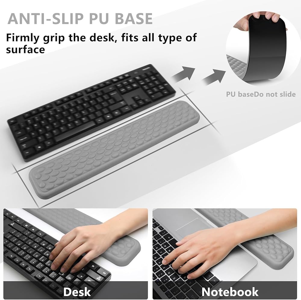 【تصميم قاعدة مضادة للانزلاق】 معصم لوحة المفاتيح يسيطر على القاعدة غير المنقولة غير المنقولة بقوة على أي سطح ثابت ، صلب للحفاظ على دعم الرسغ في مكان واحد أثناء العمل أو الألعاب. بالمقارنة مع مساند المعصم الأخرى ، ليس لديها رائحة غير سارة. مثالي لجهاز الكمبيوتر المحمول والكمبيوتر والكمبيوتر.
