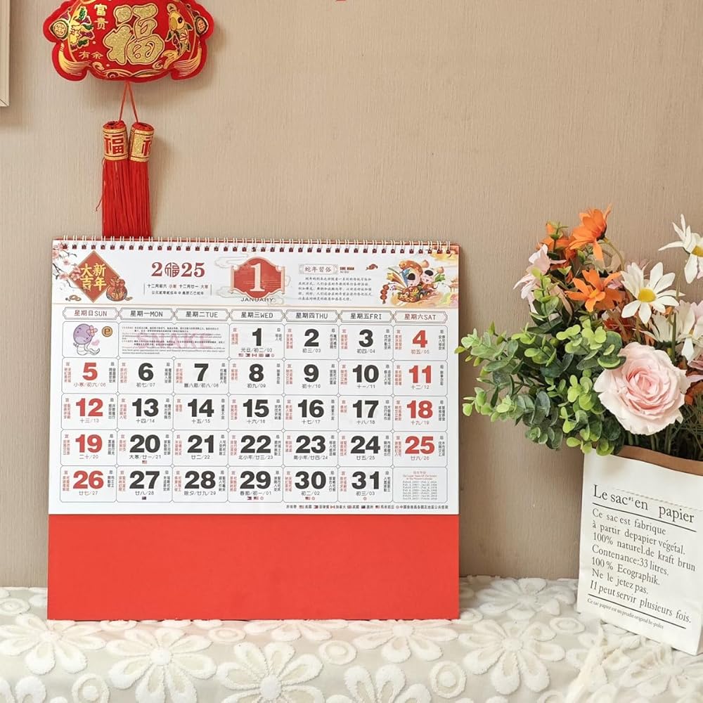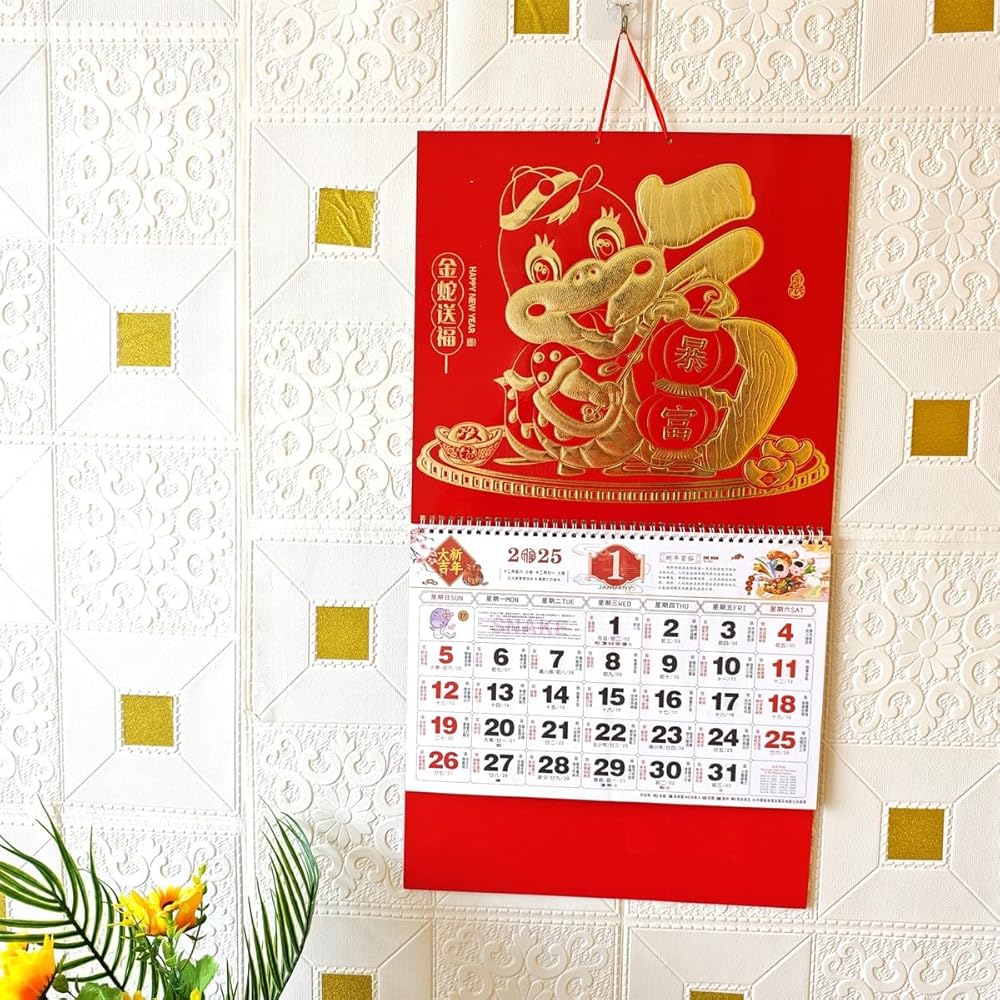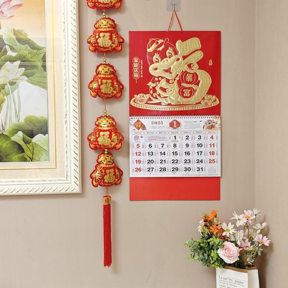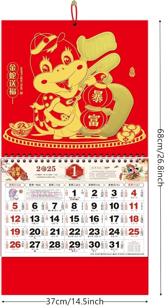 • EASY TO HANG: The 2025 Chinese calendar is equipped with red lanyard, the calendar size is 68 X 37 cm/ 26.8 X 14.5 inch, which is easy to hang on the wall or door or refrigerator or window at the office or at home,easy for you to check each month clearly through the whole year, 1 pc Chinese New Year calendar/package