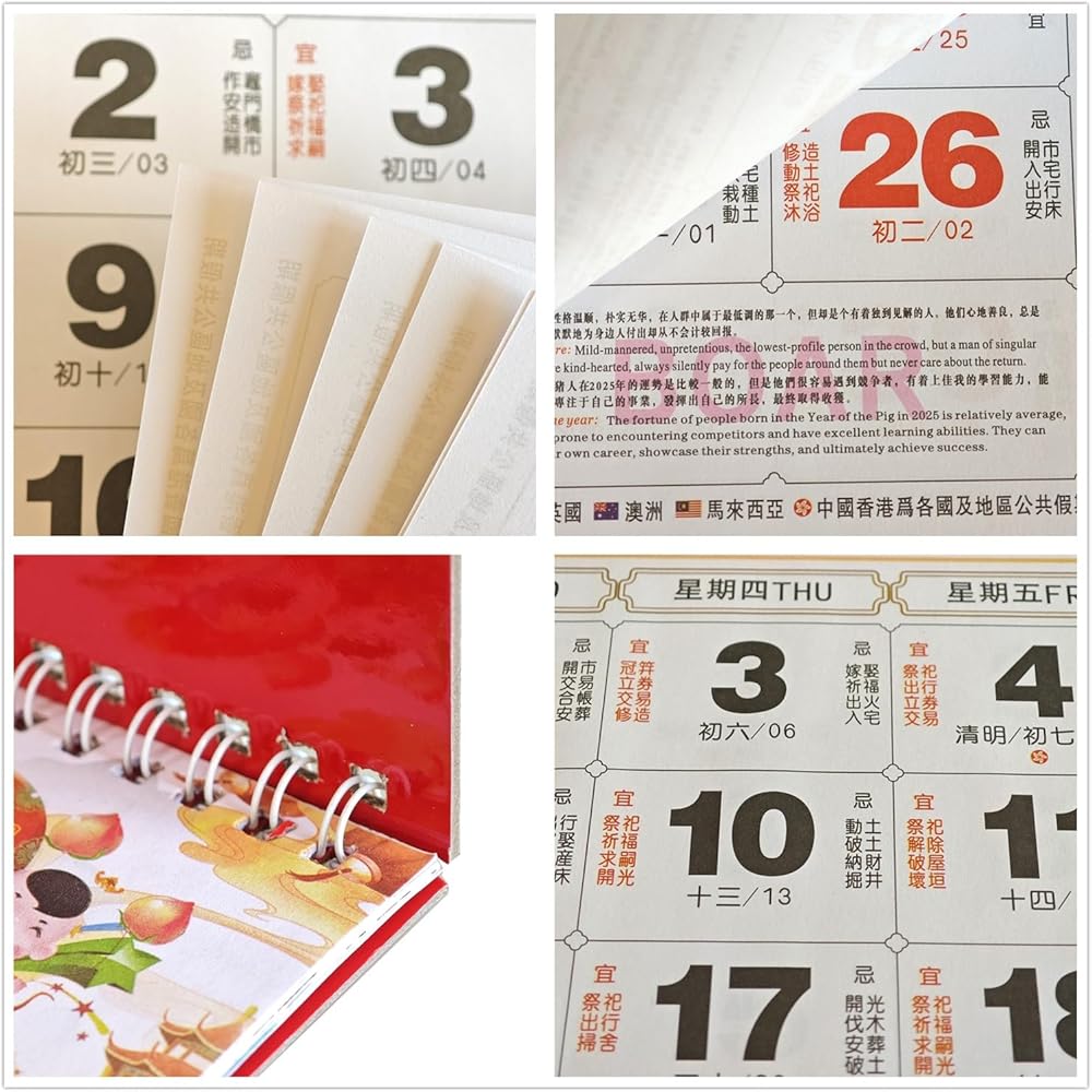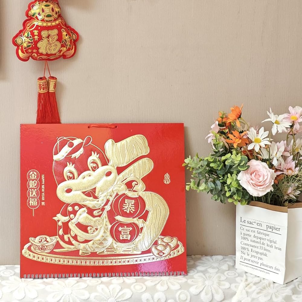• DECORATIVE DESIGN: Our cleandar is with elegant design, featuring intricate traditional Chinese artwork with vibrant colors and detailed patterns, which is with red and gold color as main background, stand for joy and blessings in Chinese traditional meaning, perfect for home office shop