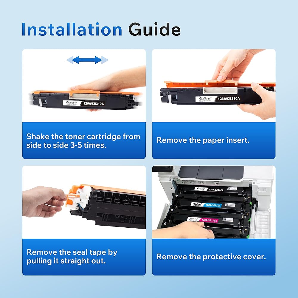 - المحتويات: 4 حزمة من خراطيش الحبر المعاد تصنيعها استبدال HP 126A CE310A (1 أسود ، 1 سماوي ، 1 أرجواني ، 1 أصفر)