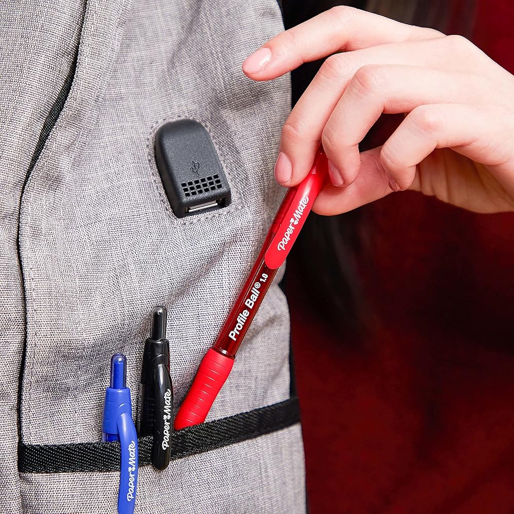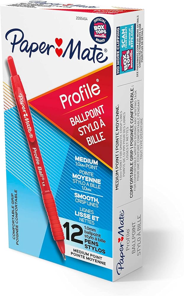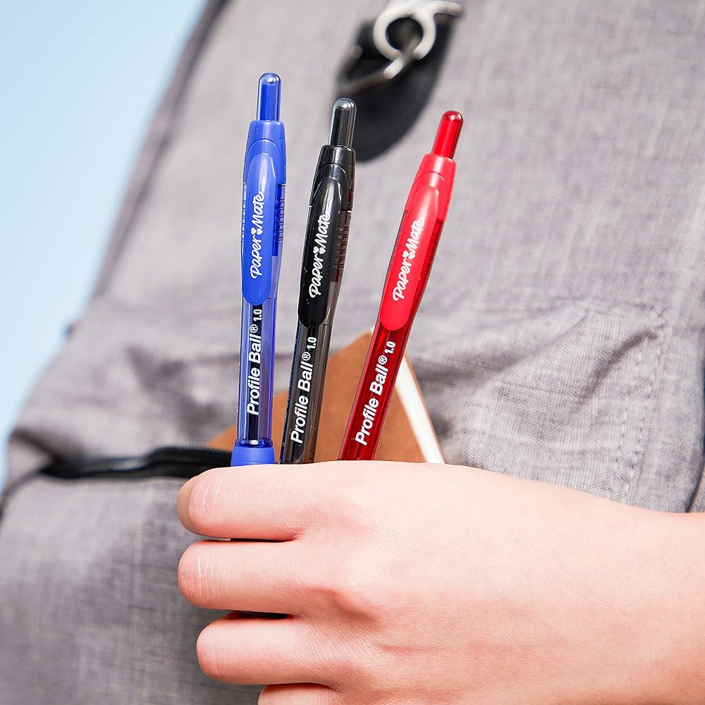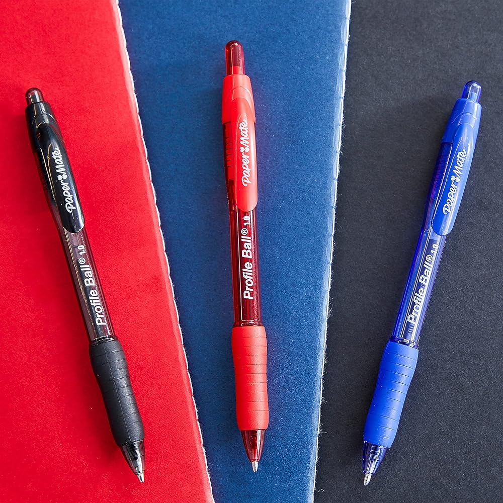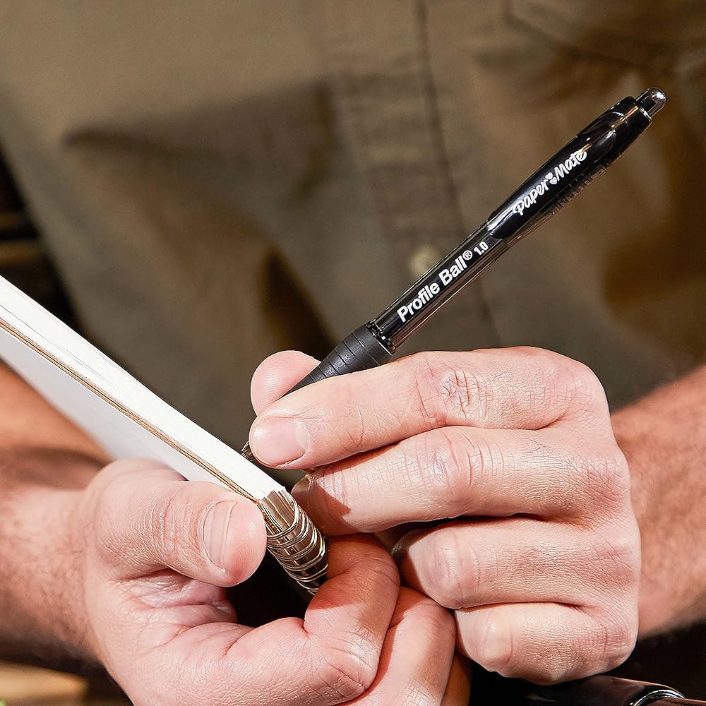 Make smooth, crisp lines with Paper Mate Profile ballpoint pens. These retractable pens now come in a 1. 0mm tip, so you can write powerful lines that stand out on the page. Profile pens also include a soft grip for comfortable writing during any writing task.