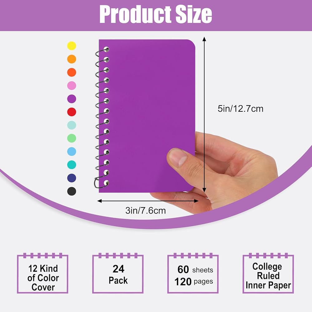 • دفاتر الحلزونية: بما في ذلك 24 حزمة في المجموع ، حجم الجيب ، 3 5 بوصة/7.6 12.7 سم ، ورقة محكم الكلية ، ملزمة خط مزدوج قوي. من السهل وضعه في جيبك لتدوين الملاحظات أثناء التنقل