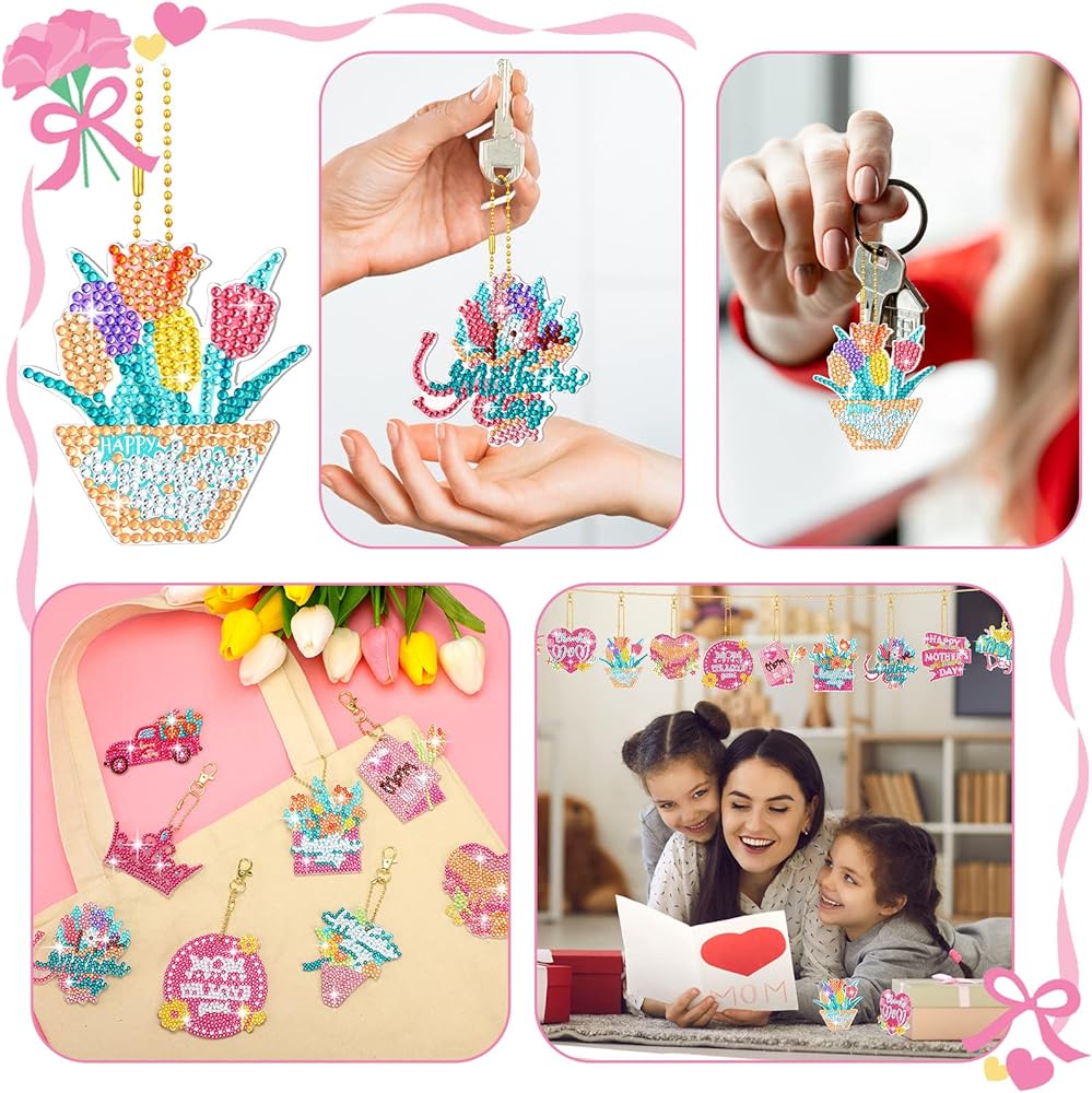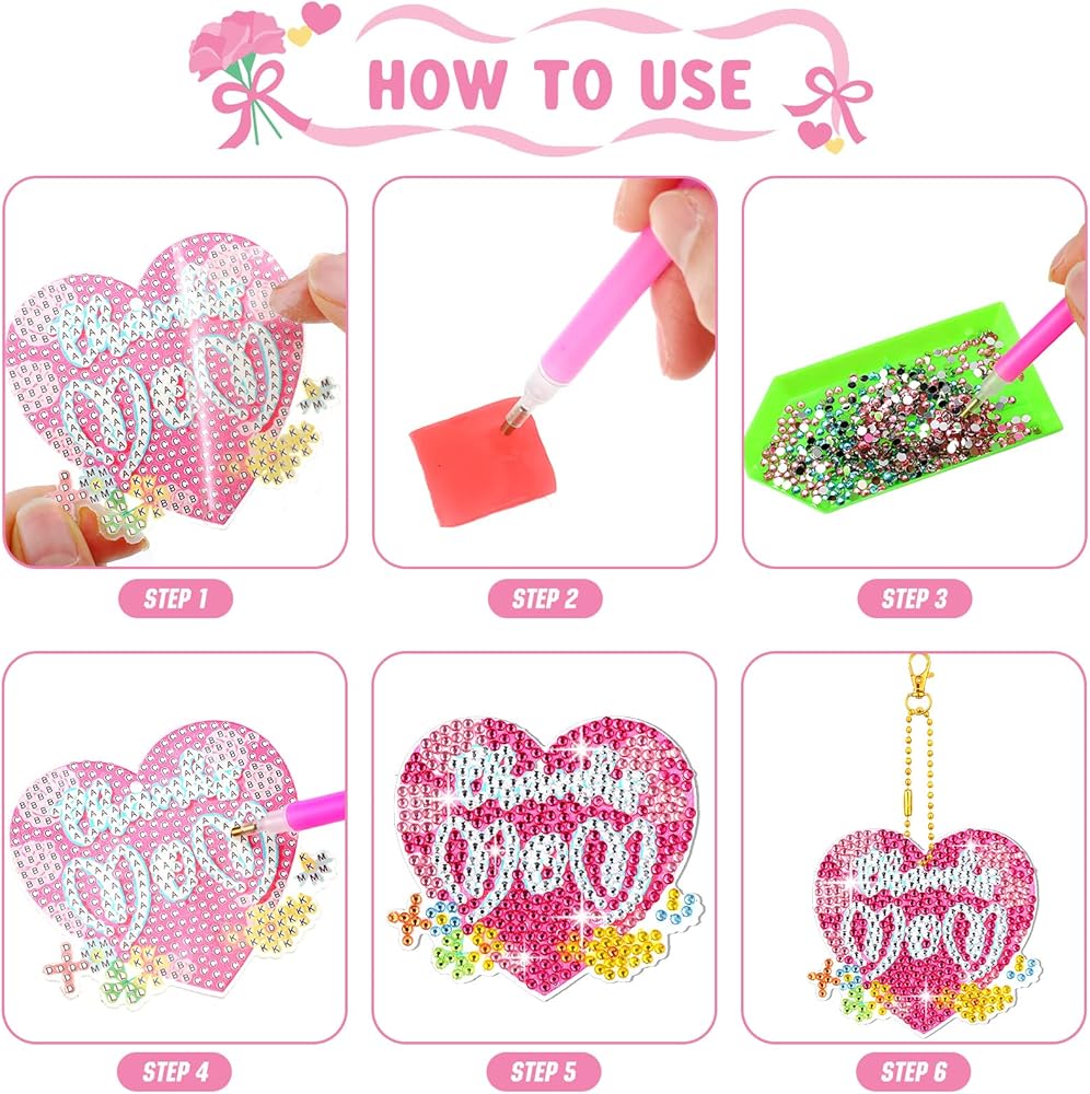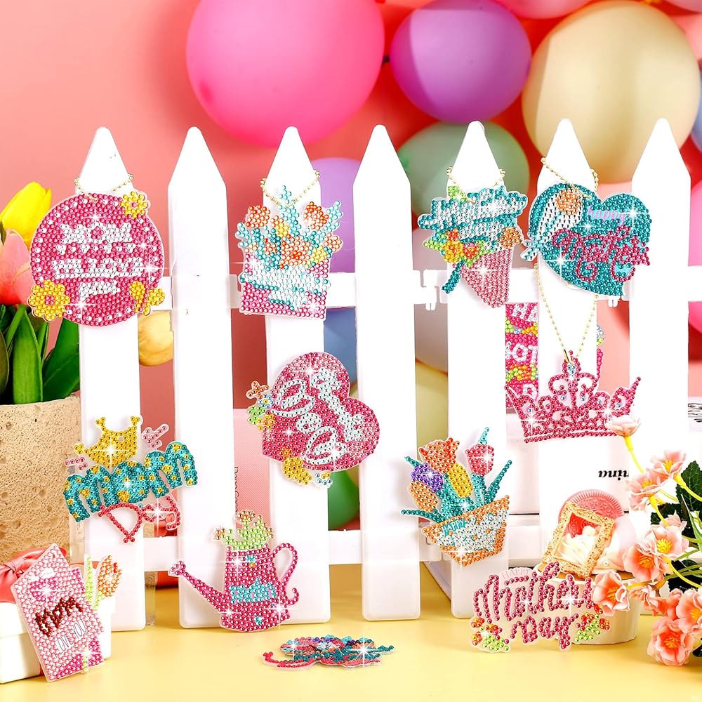Gem painting kit for kids comes with hanging strings, which is widely applied for school parties, class games, and can also be attached to items you want to decorate, such as cups, pen holders, savings jars, notebooks, refrigerator doors, cell phones, hats, windows, etc.