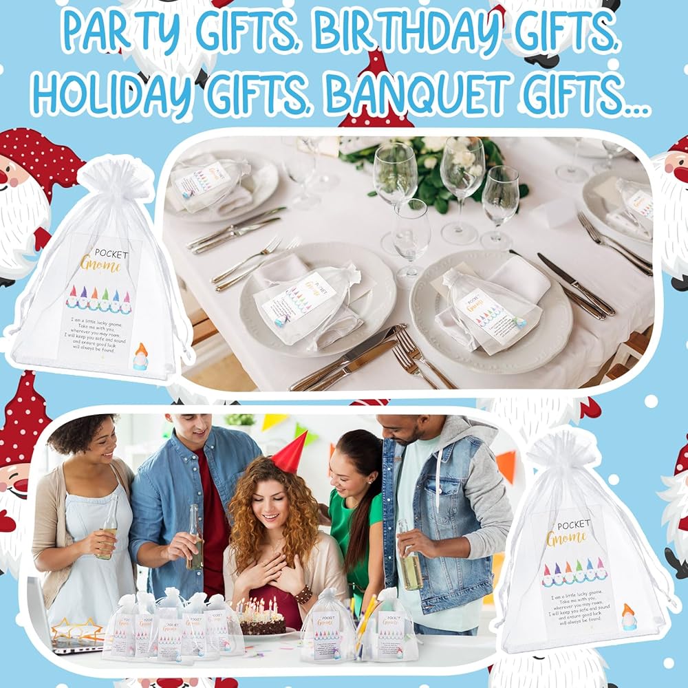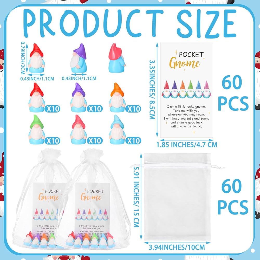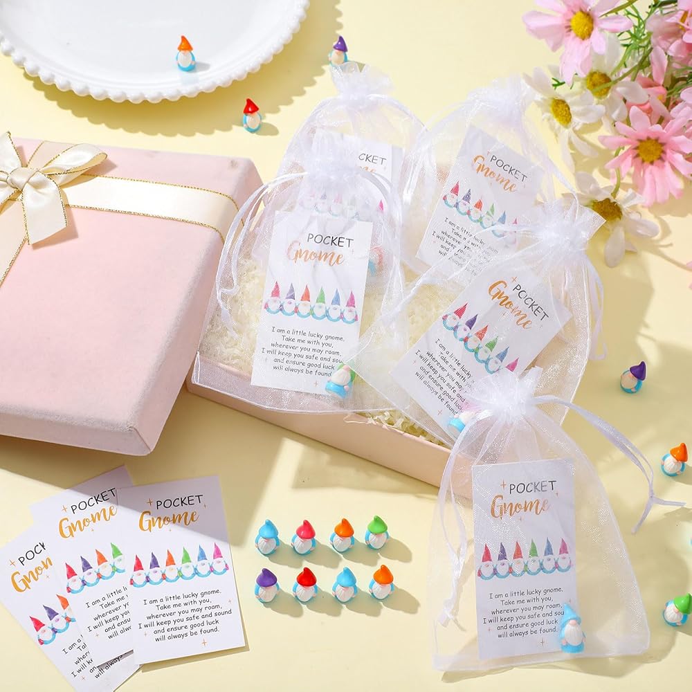 • Compelling Product Specifications: each piece within our package is crafted with suitable size; The lucky note measures approx. 1.85 x 3.35 inches/ 4.7 x 8.5 cm, the mini gnome approx. 0.43 X 0.79 inches/ 1.1 x 2 cm, and the organza bag measuring approx. 5.51 x 3.74 inches/ 14 x 9.5 cm is spacious enough to comfortably hold the cards and figurines