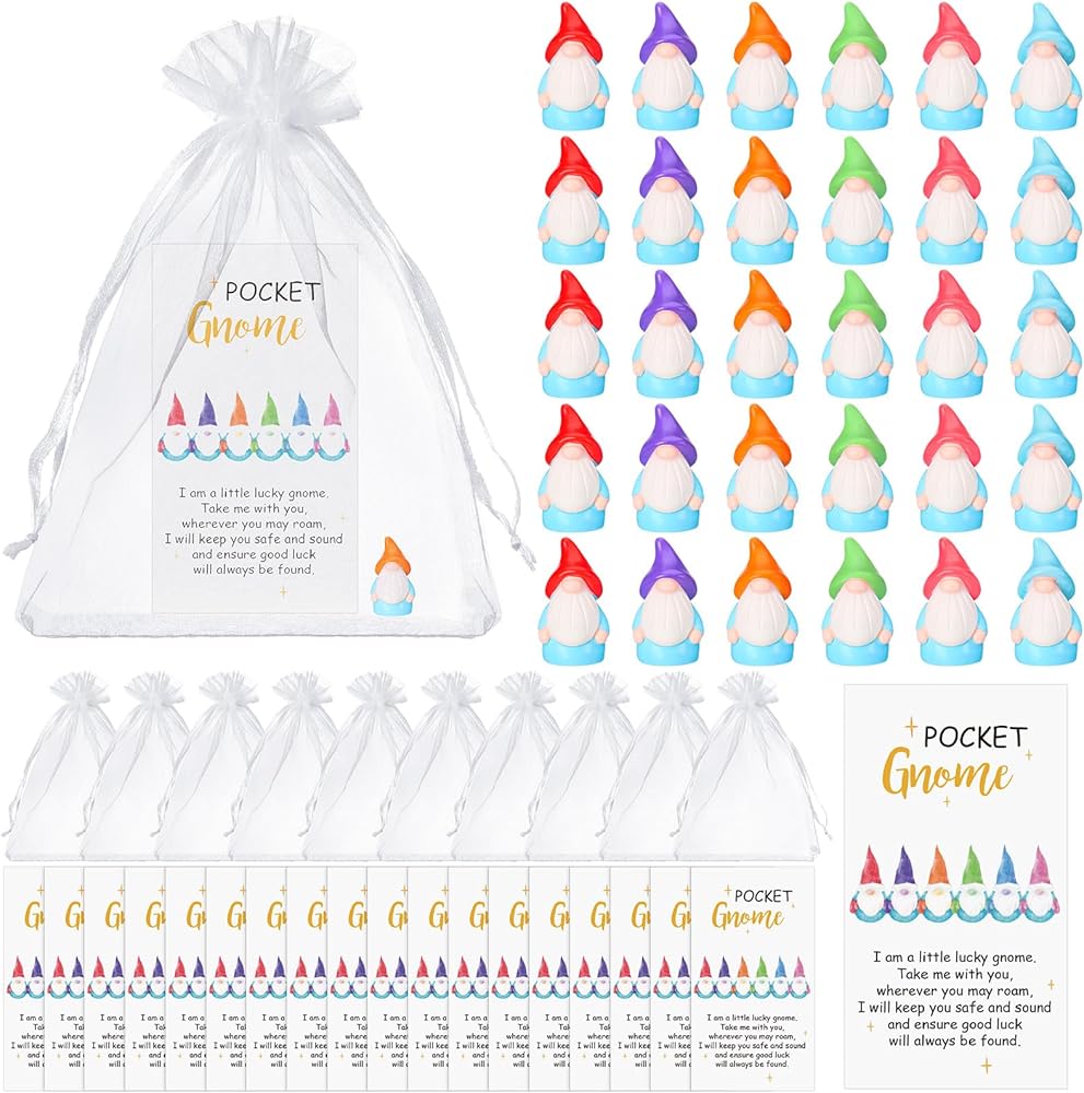 • Lucky Gnome Pocket Gift: you will receive 30 mini resin gnome statues (6 colors in total), 30 white drawstring gift bags and 30 lucky cards; You can put coins and cards in the bags in an ideal combination and enough quantity to meet your gift needs