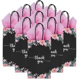 Djinnglory 50 Pack Pack Small Floral Paper Gift With Handles و Pink Tissue Paper for Boutiques ، Black شكرًا لك حقائب جيدة لحفلات الزفاف ، وأعياد الميلاد ، وحزم الرعاية ، و 9 ×.