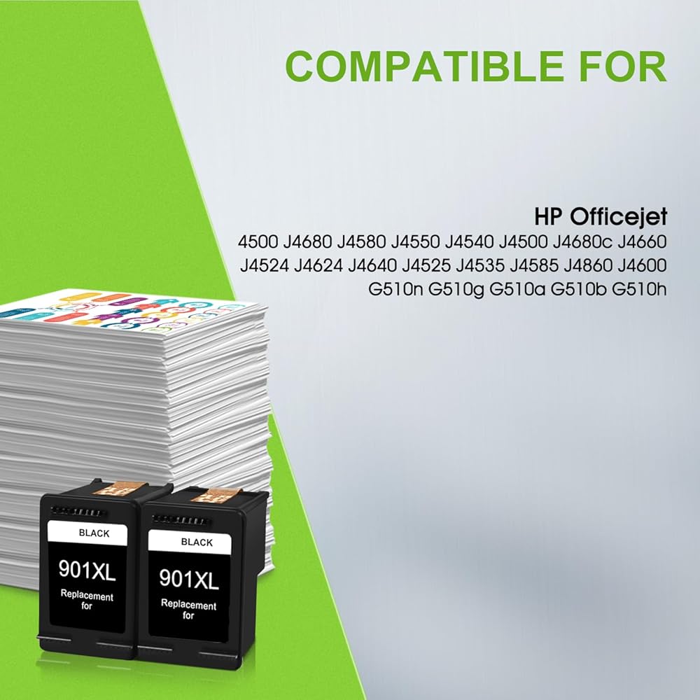 901 خراطيش حبر أسود استبدال خرطوشة الحبر المعاد تصنيعها لـ HP 901XL 901 XL لـ Officejet 4500 J4524 J4540 J4550 J4580 J4624 J4680 Printer (2 Black)