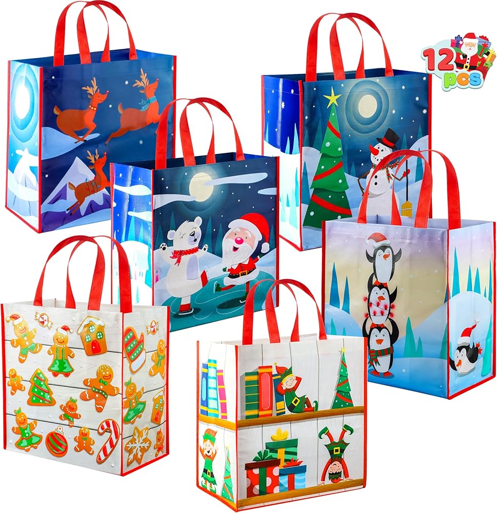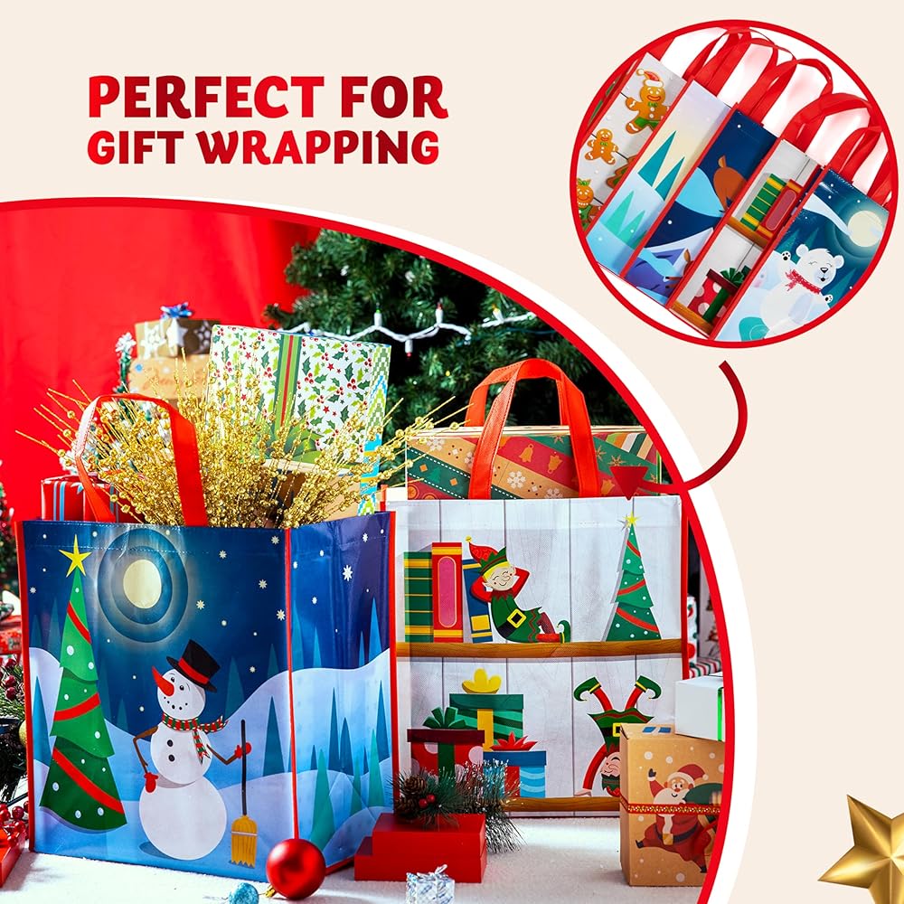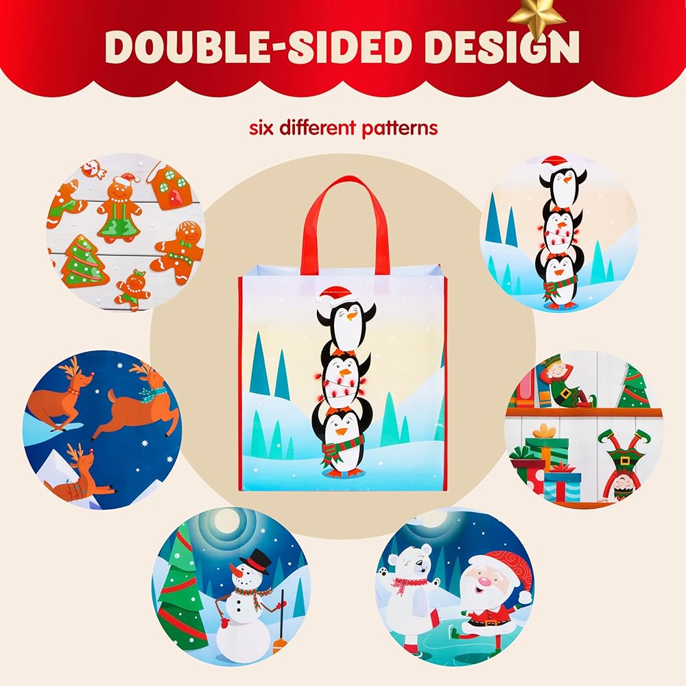 احتفالي فريد. حقائب البقالة القابلة لإعادة الاستخدام لدينا مع عدم وجود Hands Hand هي رائعة للتسوق ، وحقائب الحفلات العطلة ، وإعطاء هدايا لعبة ، وحقيبة حالية. مثالي لتقديم الهدايا خلال العطلات ، وقم بملء هدايا عيد الميلاد لوضعها تحت أشجار عيد الميلاد الخاصة بك!