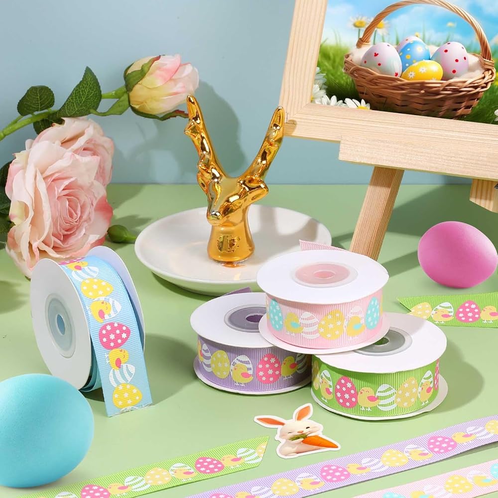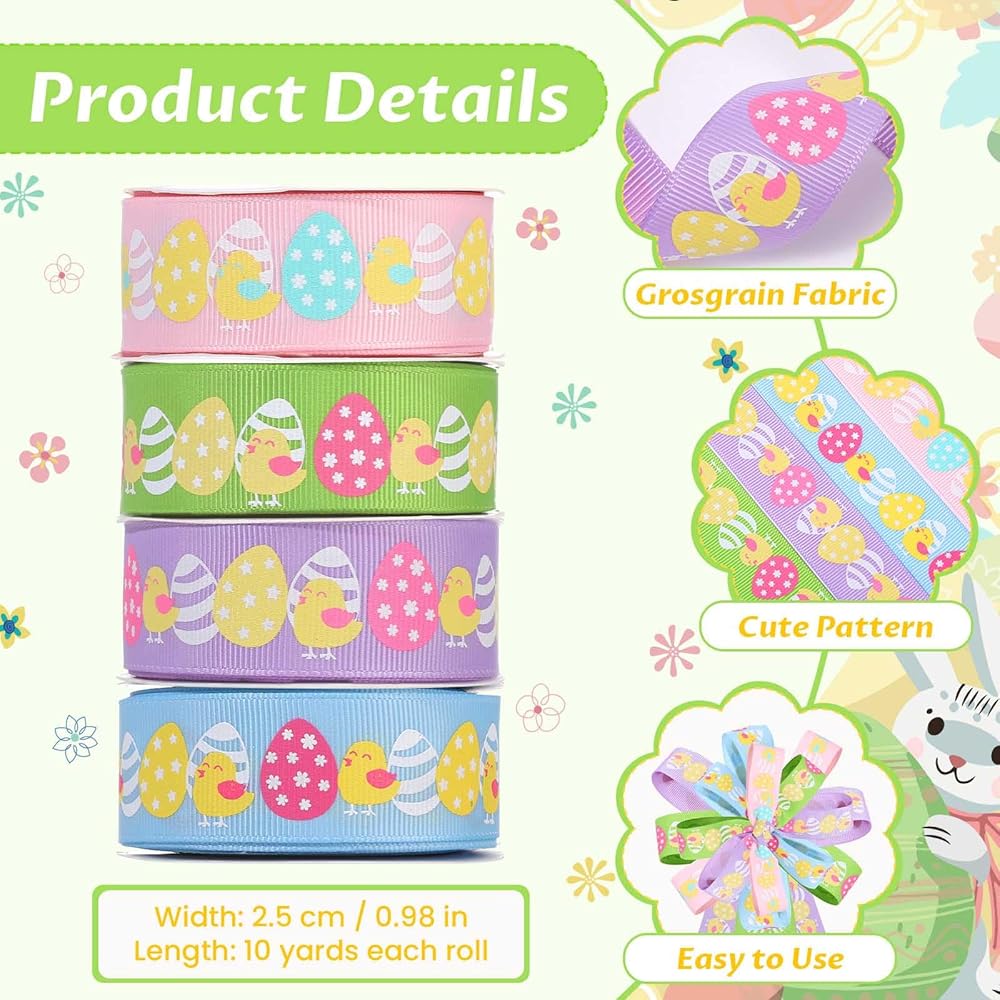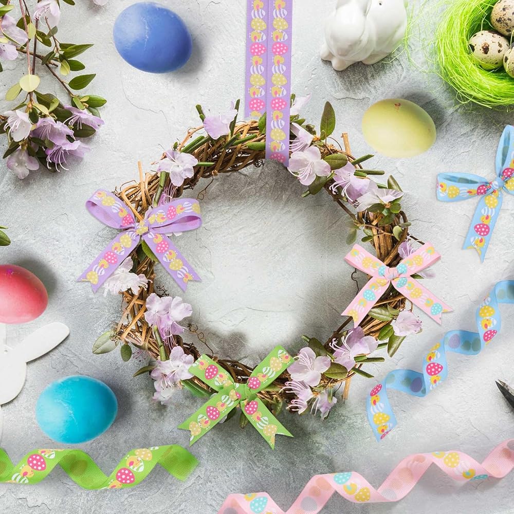 شريط Easter Grosgrain: ستتلقى 4 لفات من شريط عيد الفصح ، مما يوفر ما يكفي من المواد لمشروع DIY الخاص بك. توفر هذه المجموعة مجموعة متنوعة من ألوان الباستيل الناعمة ، مثل اللون الوردي والأرجواني والأخضر والأزرق الفاتح لتكملة موضوع عيد الفصح والربيع.