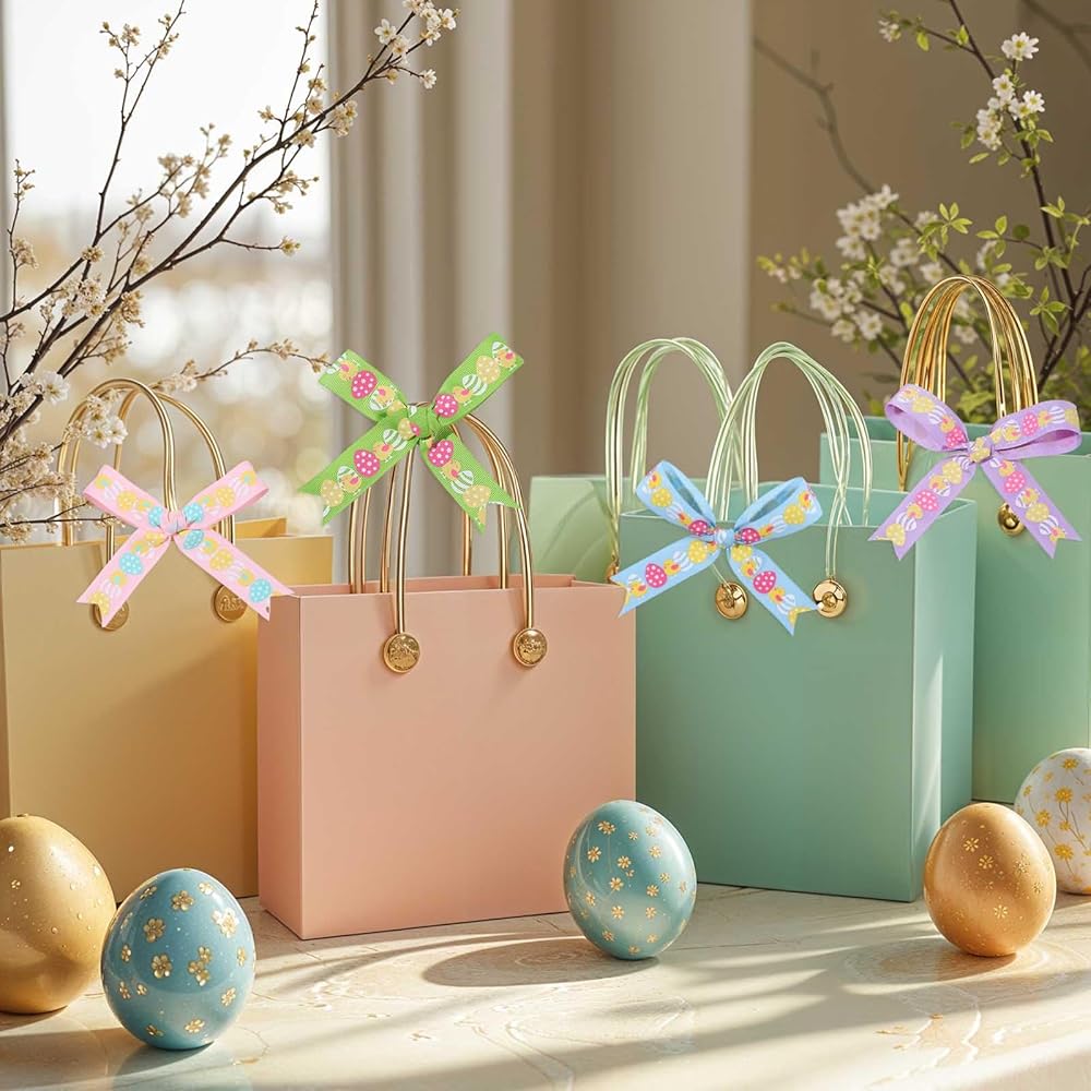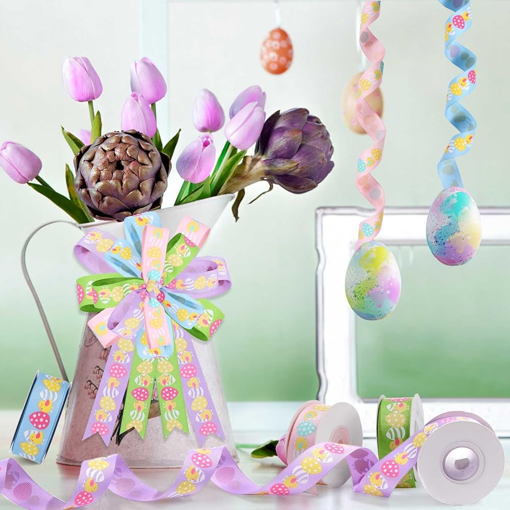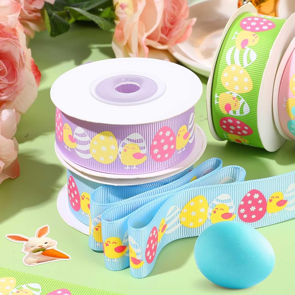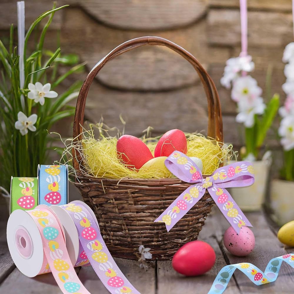 شريط Easter Grosgrain: ستتلقى 4 لفات من شريط عيد الفصح ، مما يوفر ما يكفي من المواد لمشروع DIY الخاص بك. توفر هذه المجموعة مجموعة متنوعة من ألوان الباستيل الناعمة ، مثل اللون الوردي والأرجواني والأخضر والأزرق الفاتح لتكملة موضوع عيد الفصح والربيع.