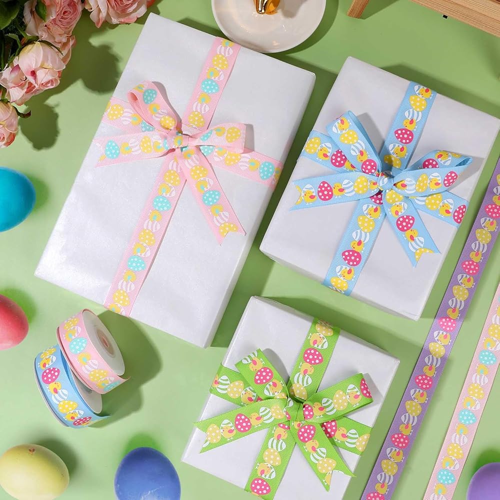 تصميم لطيف: يضم بيض عيد الفصح والكتاكيت المرحة ، من المؤكد أن هذه الأنماط ستضيف لمسة من التطور الرائع. تم تصميم شرائط الباستيل هذه لجلب جوهر عيد الفصح إلى الحرف اليدوية الخاصة بك ، وزينة العطلات ، ومشاريع DIY.