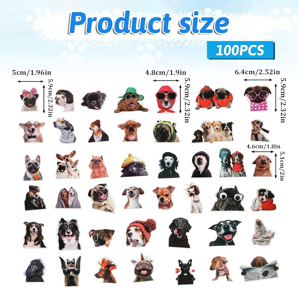 100pcs Funny Dog Stickers Cute Animal Sticker for Journaling Laptop Scrapbook Water Bottles Guitar Suitcase Phone Snowboard Cool Pet Waterproof Vinyl Gifts for Women Girl Kids Adult Teens
