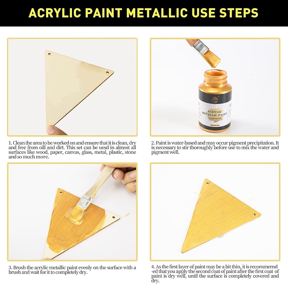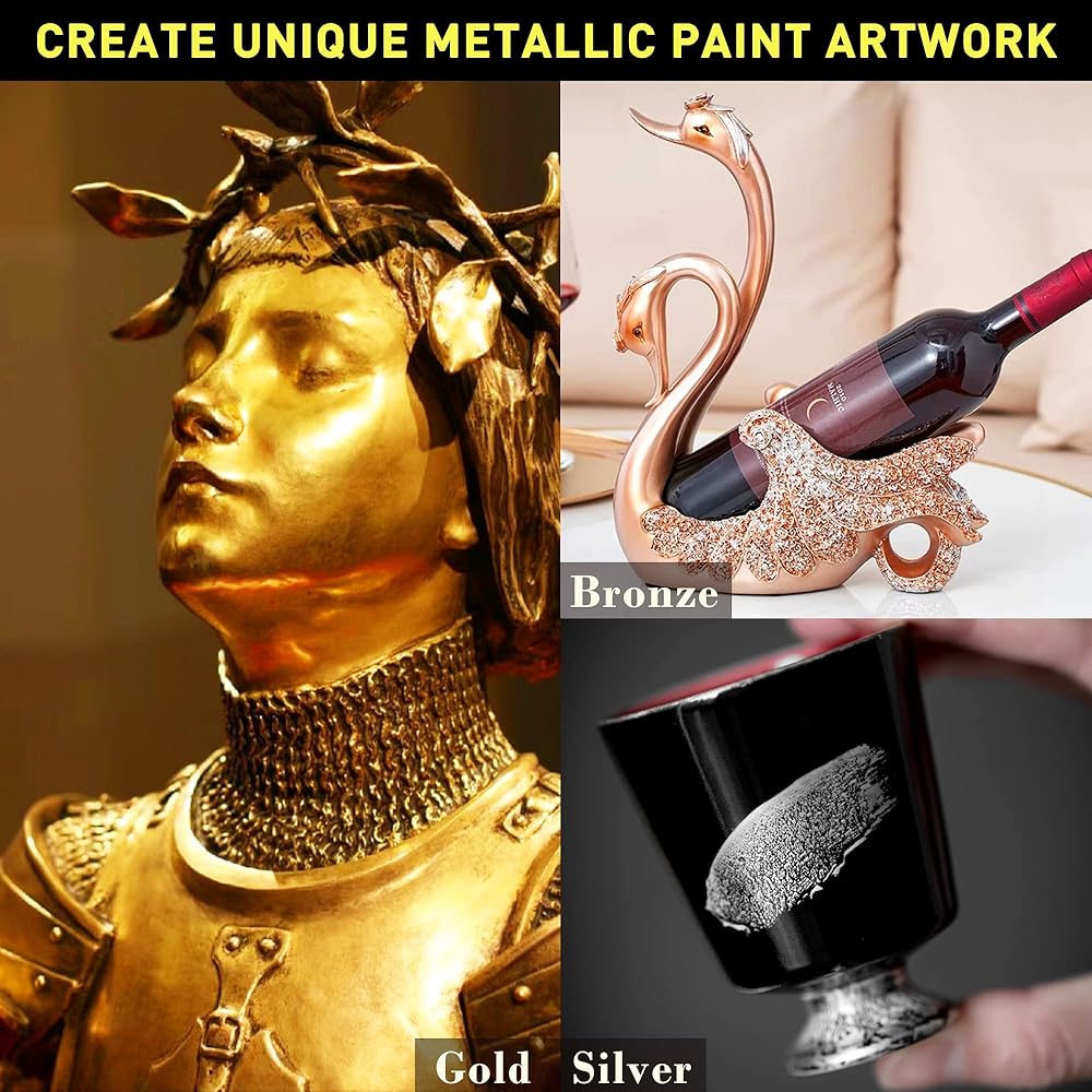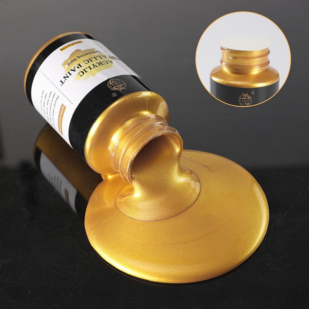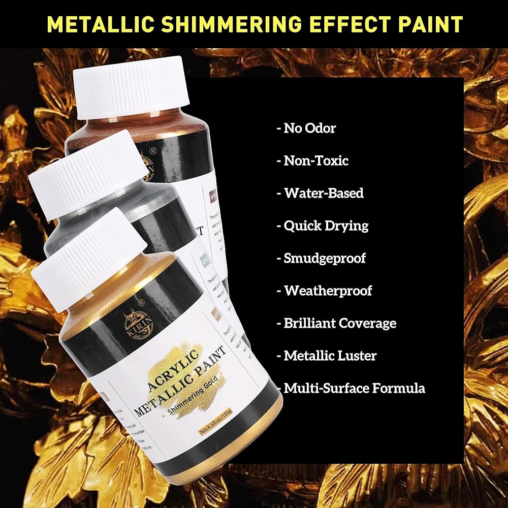 طلاء الأكريليك: يحتوي طلاء كيرين على أصباغ غنية وألوان متلألئة وتغطية ممتازة. تحتوي هذه المجموعة على 3 زجاجات من الطلاء المعدني 100 مل (تشمل الذهب والفضة والبرونز) و 3 فرش. يمكن أن تلبي الألوان الغنية والطلاء الكبير احتياجاتك المختلفة